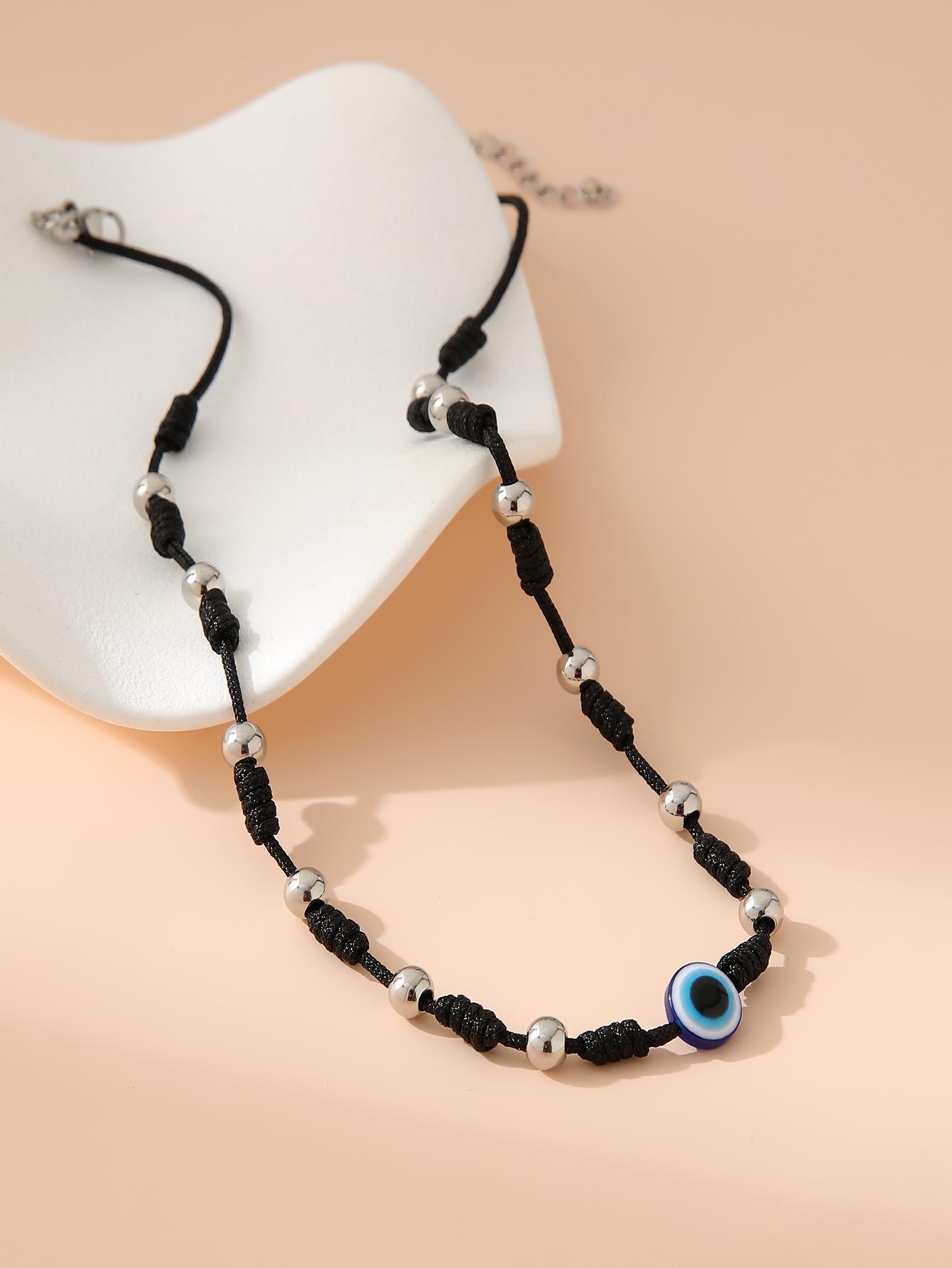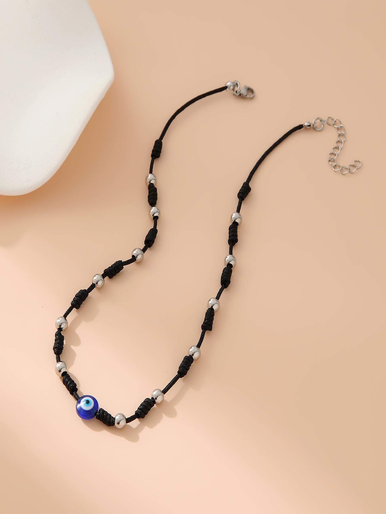 Europa y Estados Unidos nuevo mal de ojo acero inoxidable cuenta tejida collar simple damas joyería de cuello venta al por mayor transfronterizo exclusivo