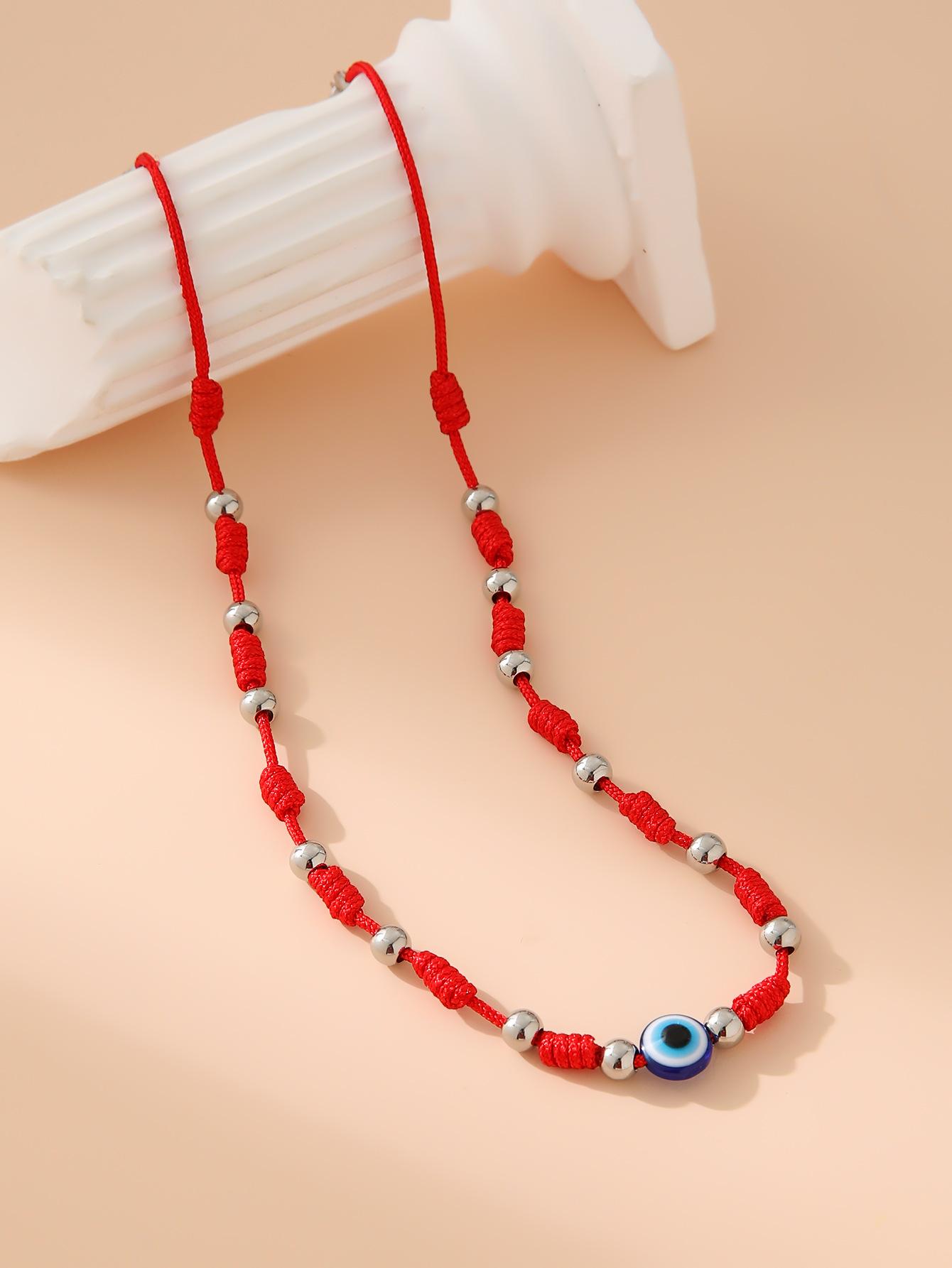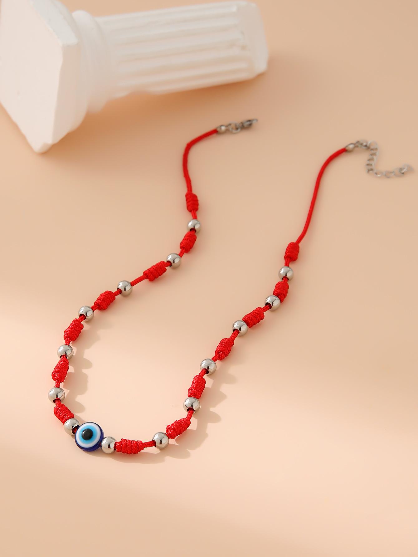 Knotted steel ball evil eye necklace black one piece, Knotted steel ball evil eye necklace red one piece