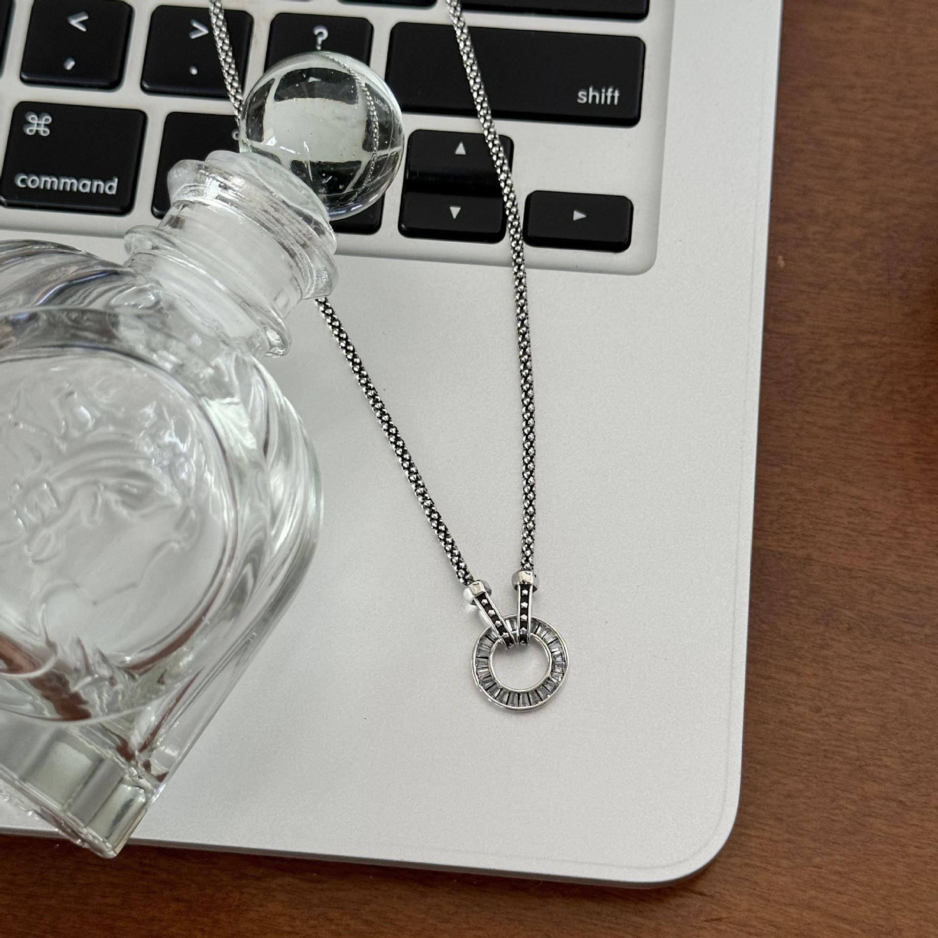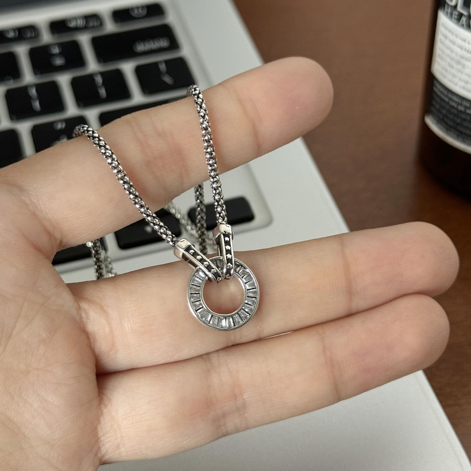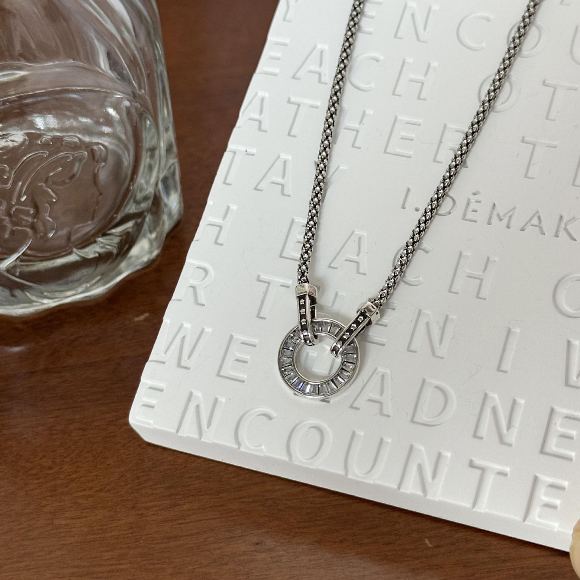 Lujo ligero retro estrellas pastel redondo collar de circón de diamantes completos diseño nicho para mujer anillo cadena clavicular accesorios venta al por mayor