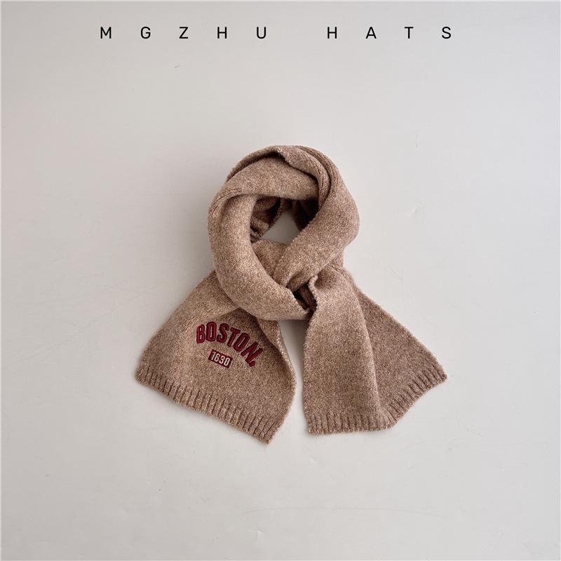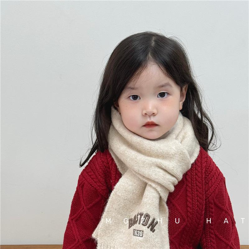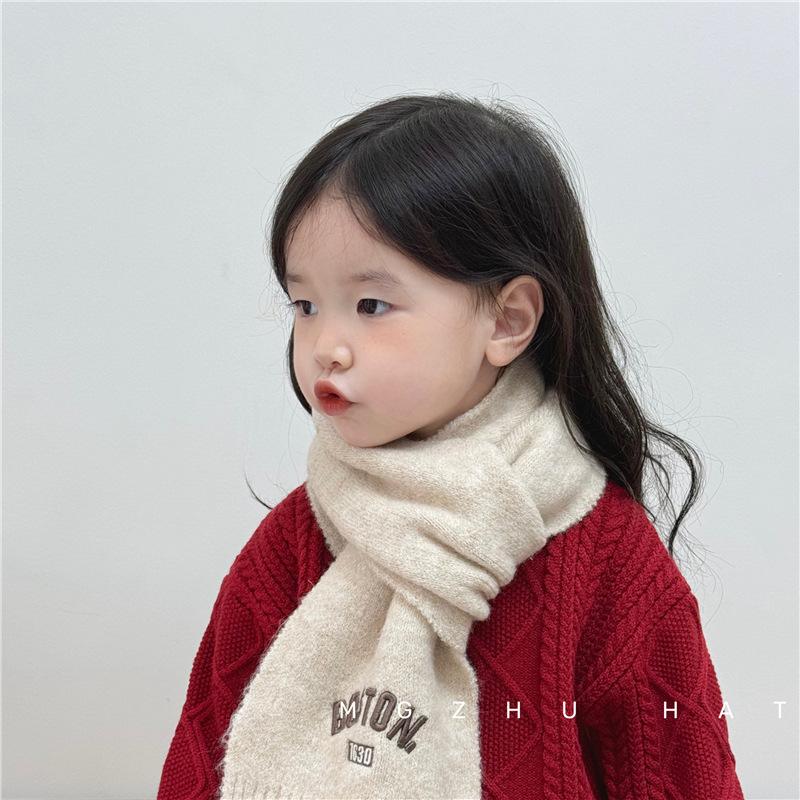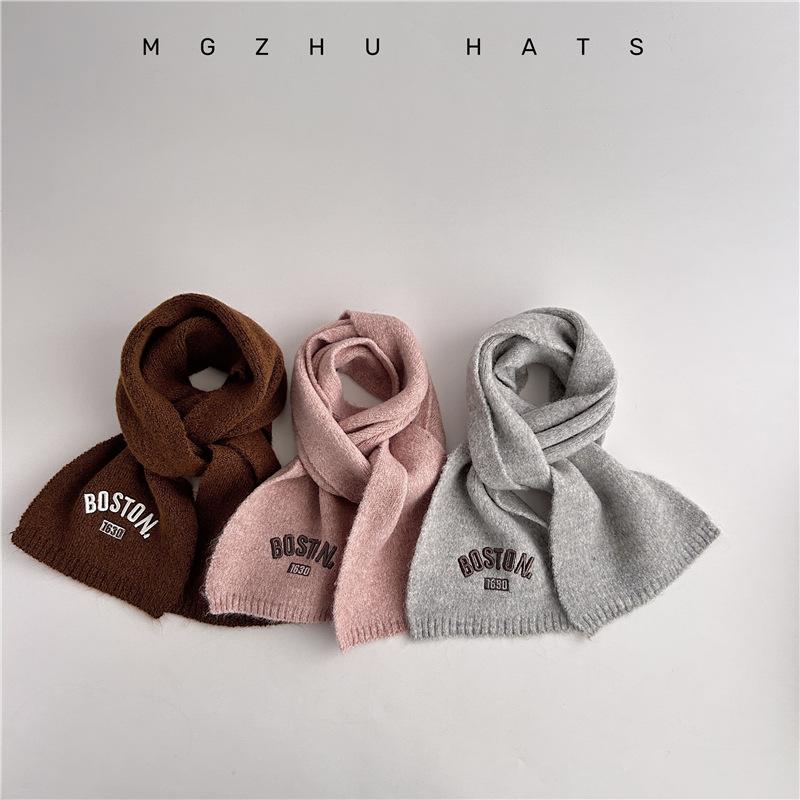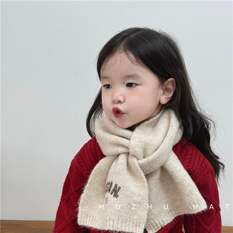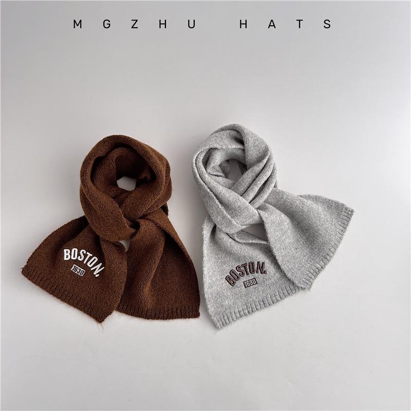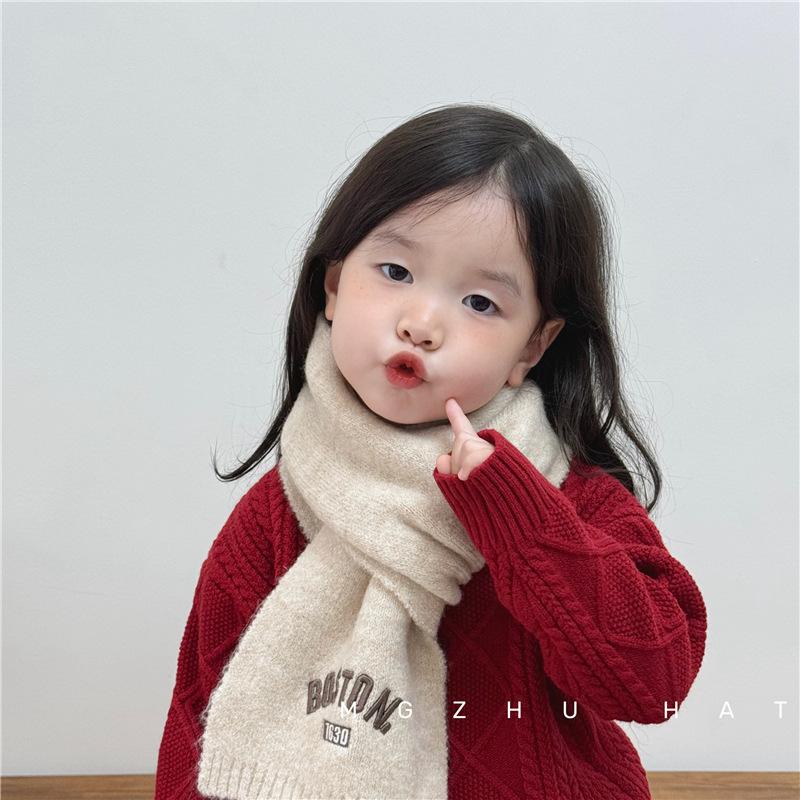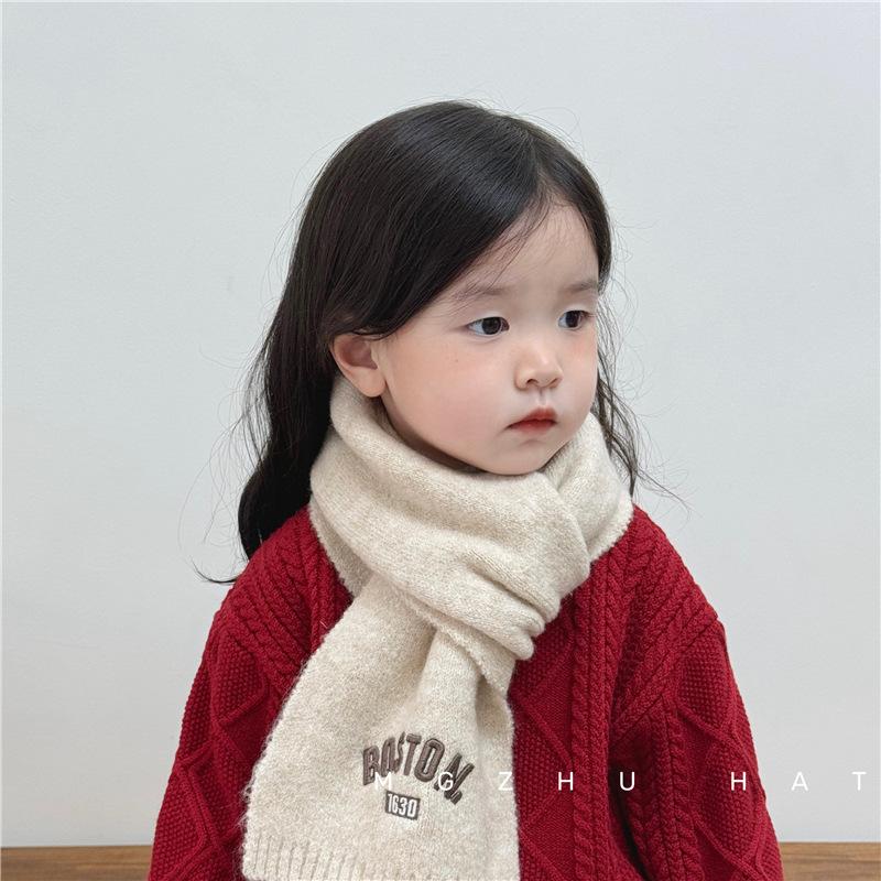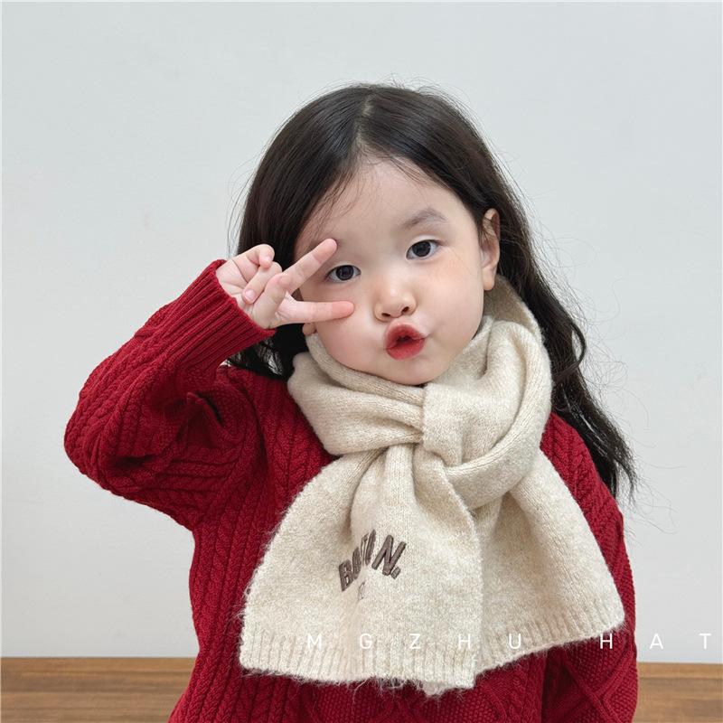 Bufanda para niños, otoño e invierno, estilo occidental, con letras bordadas, cálida, resistente al viento, estilo coreano, cuello largo de invierno para bebés.
