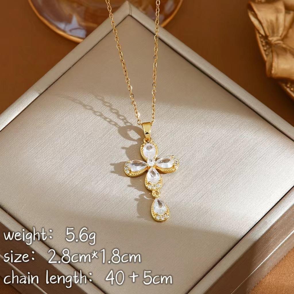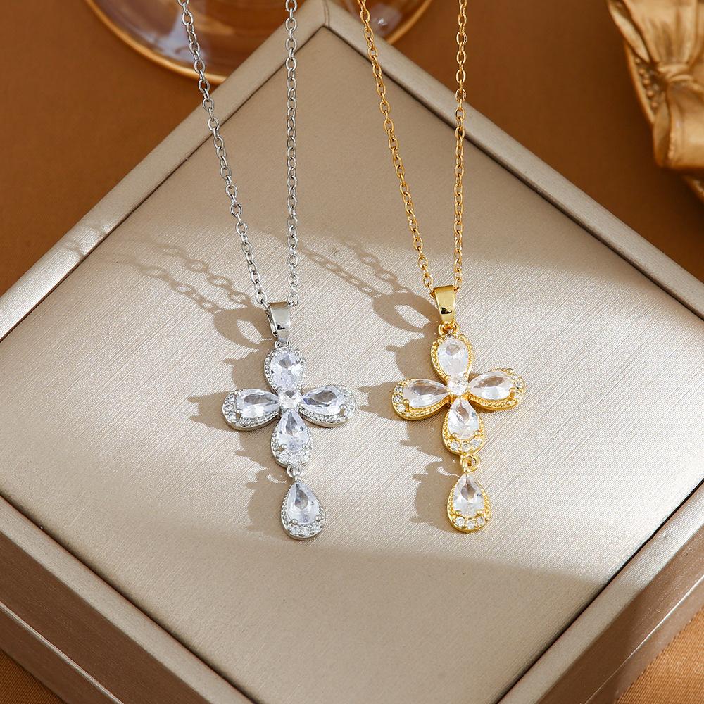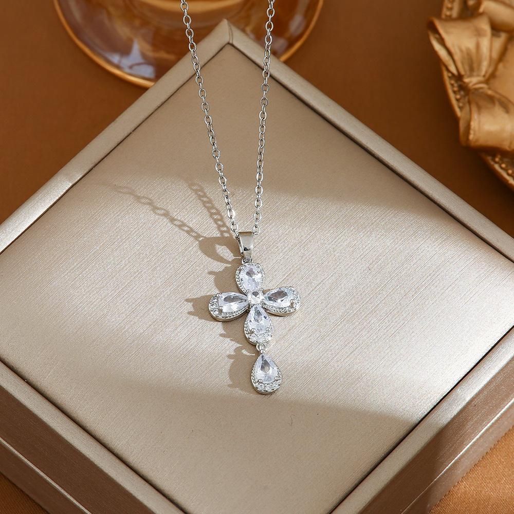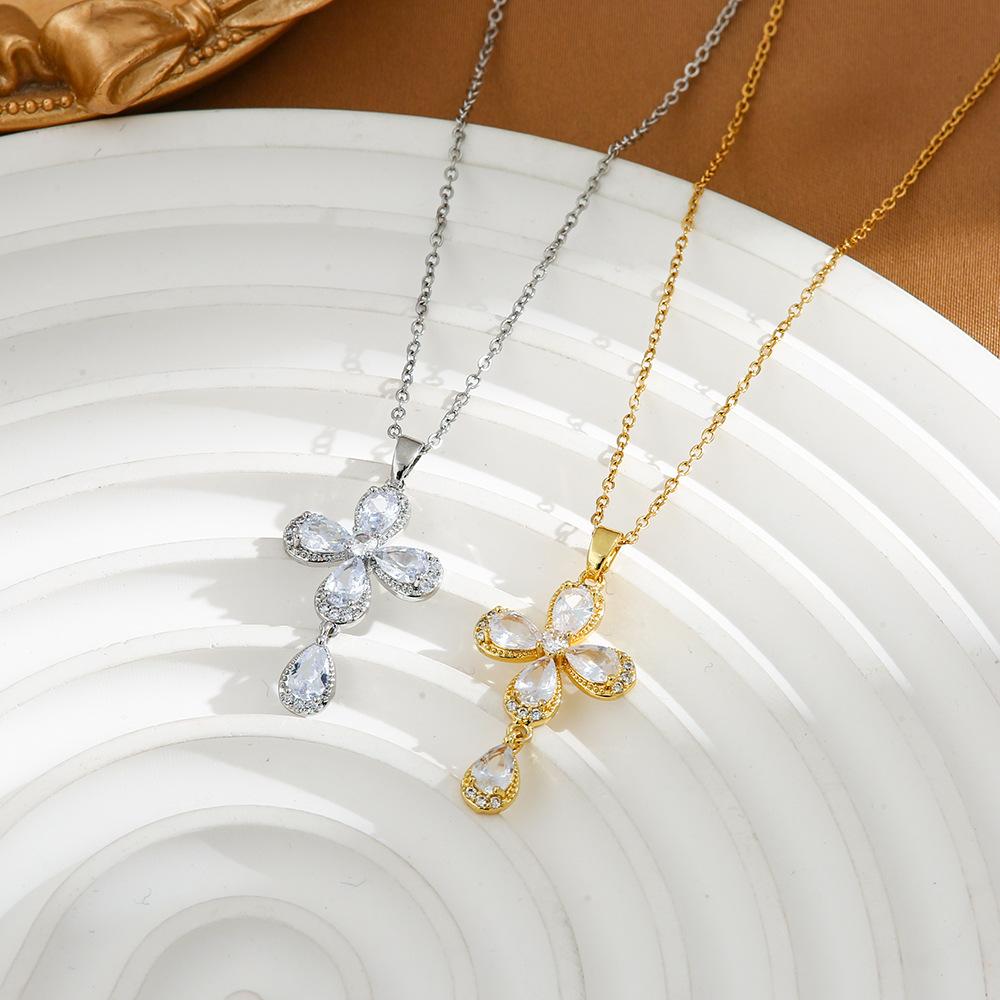 [Acero de titanio] Collar de gota de agua con trébol de cuatro hojas de diamantes, elegante y ligero, con temperamento de lujo, cadena de clavícula Joker para mujer, fabricantes al por mayor