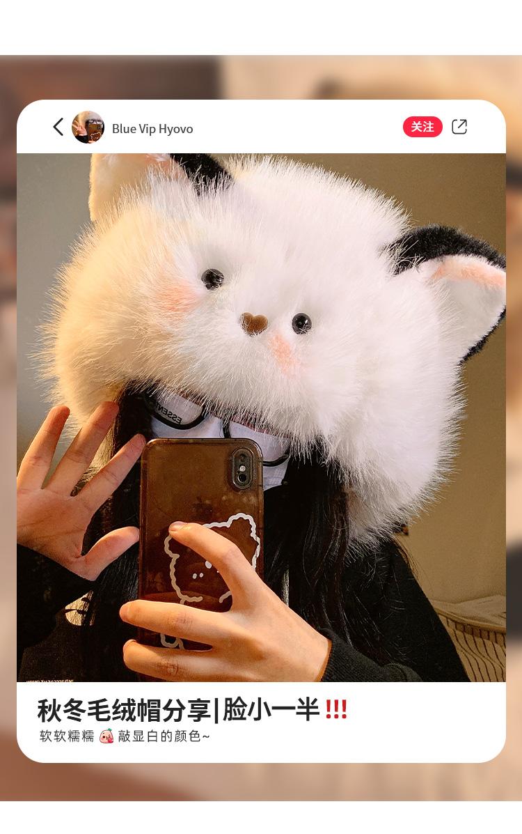 Lindo Sombrero de Felpa con Orejas de Gato para Mujer Otoño e Invierno con Forro Polar Grueso Cálido a Prueba de Frío Protección para las Orejas Sombrero Lei Feng para Rostro Pequeño