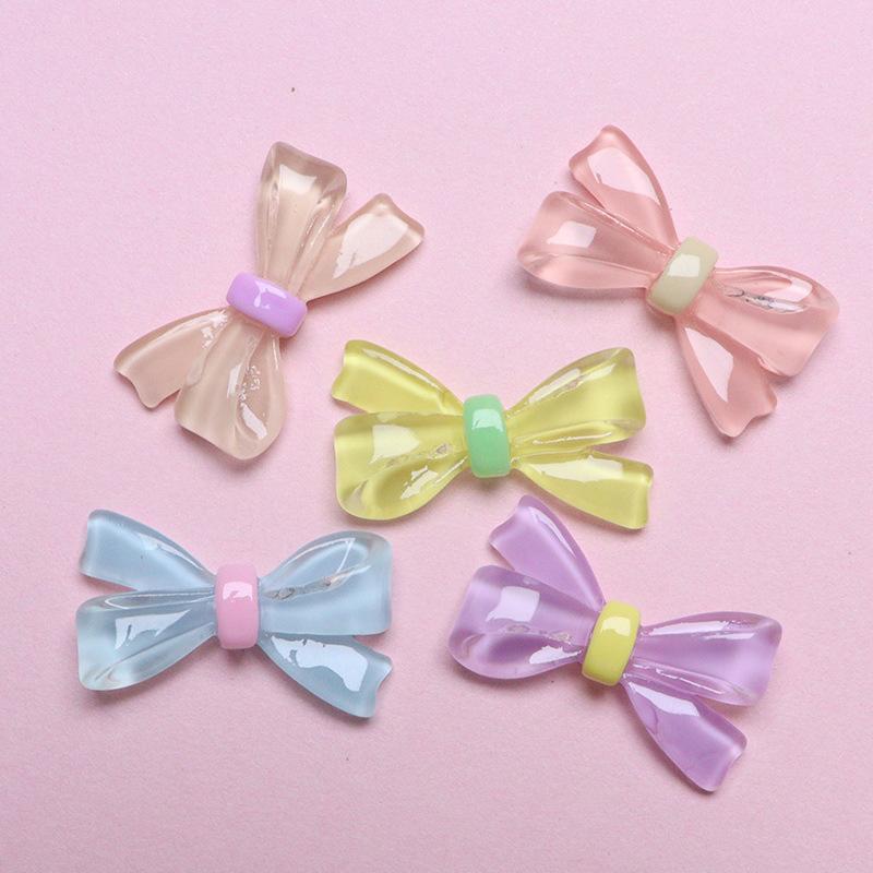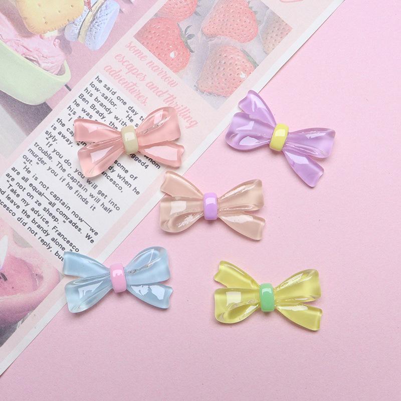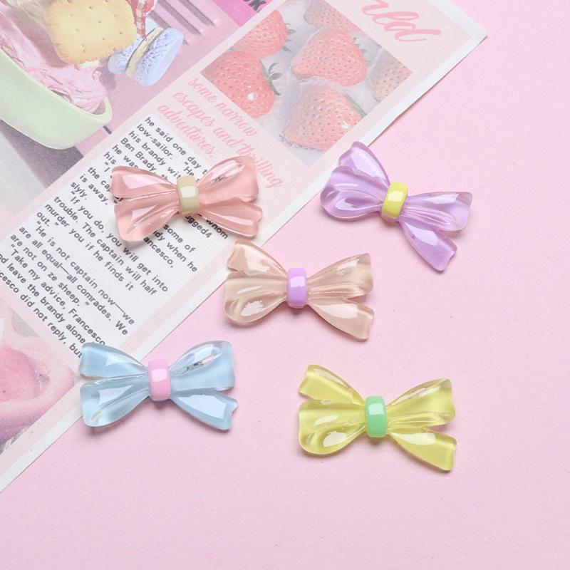 Pajarita de resina transparente, accesorios de joyería para hacer tú mismo, tocados para niños, material de tendón de goma, parche de copa