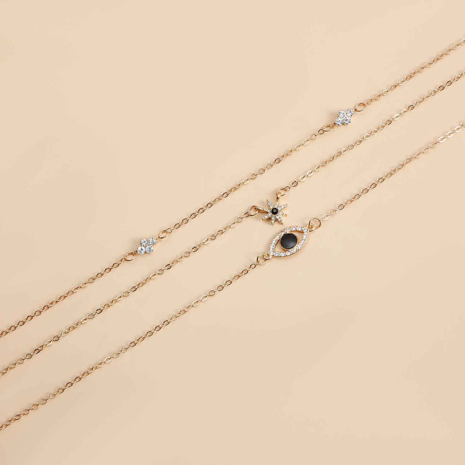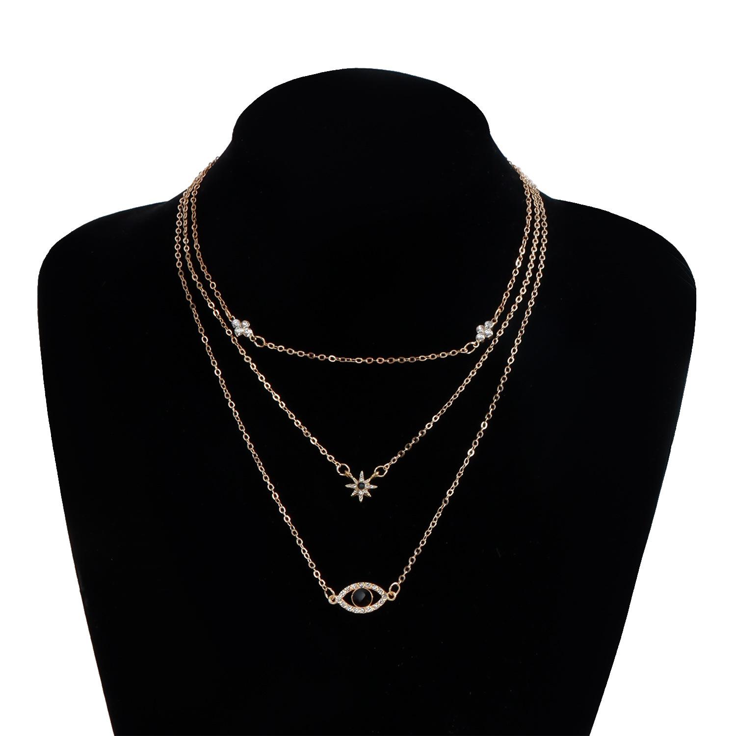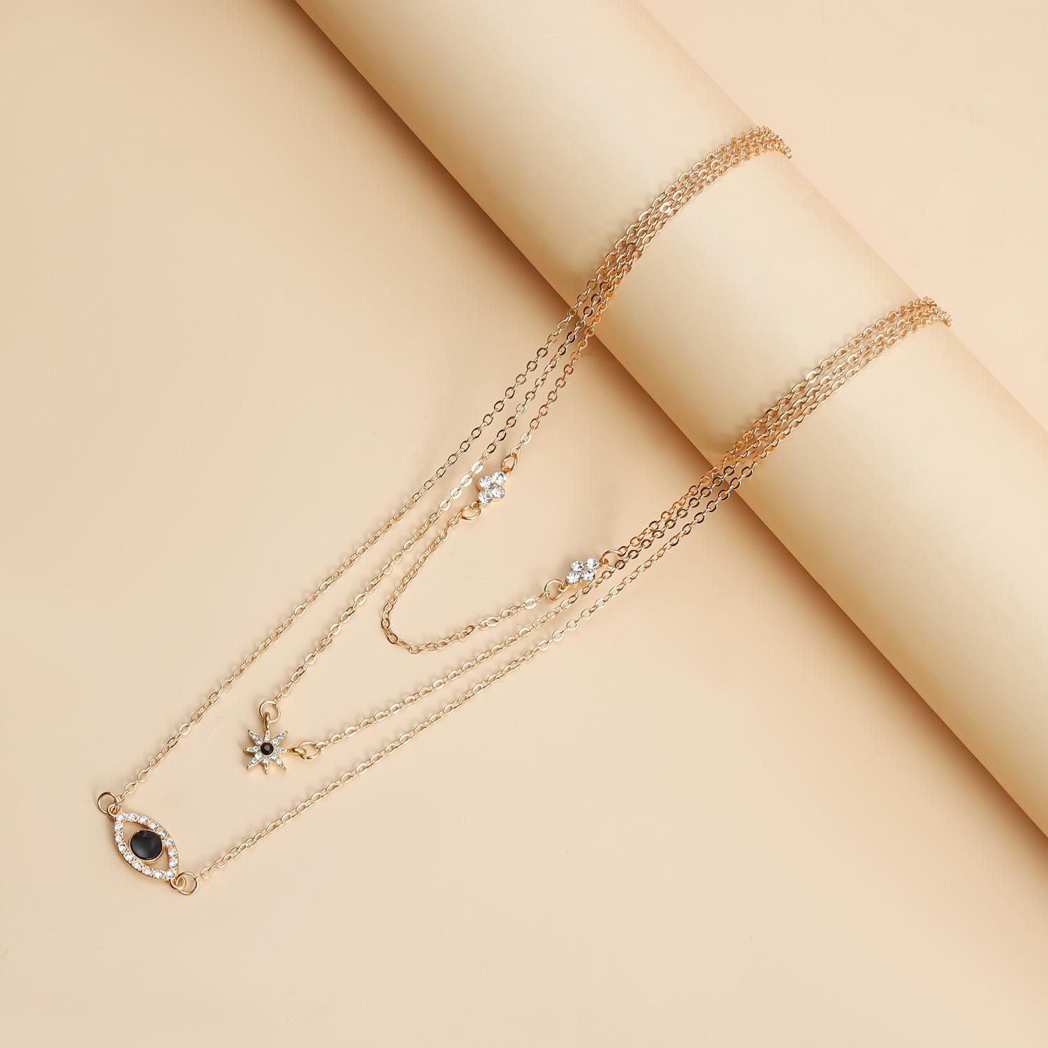 Collar multicapa con diseño de nicho y cadena de clavícula con estrella de ocho hombres y diamante de ojo de diablo con personalidad transfronteriza entre Europa y Estados Unidos para mujer