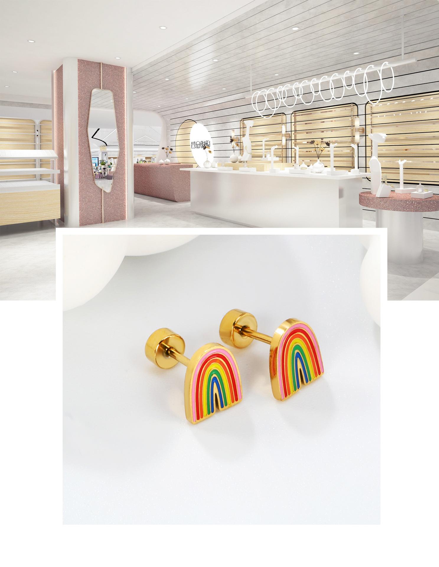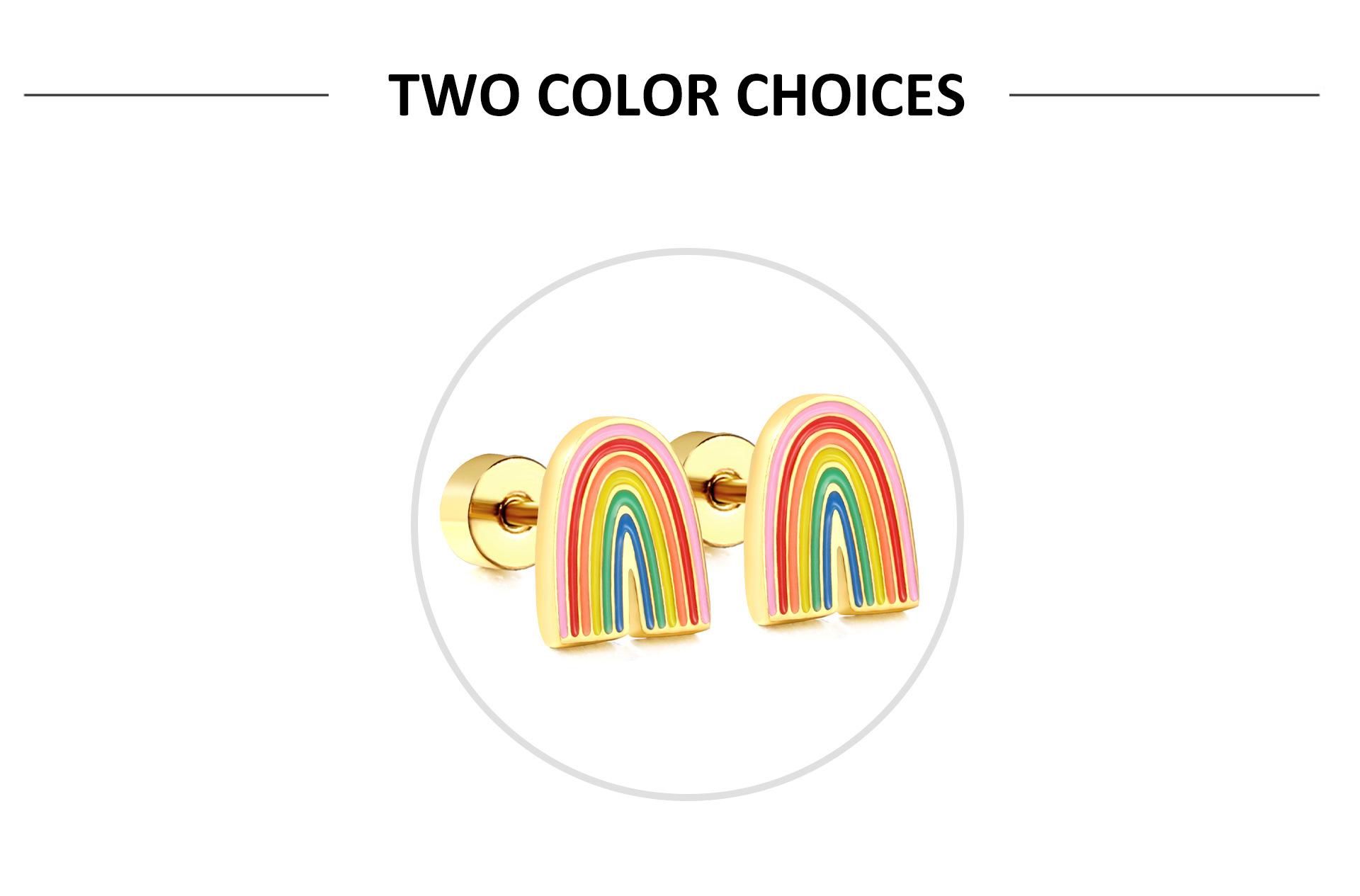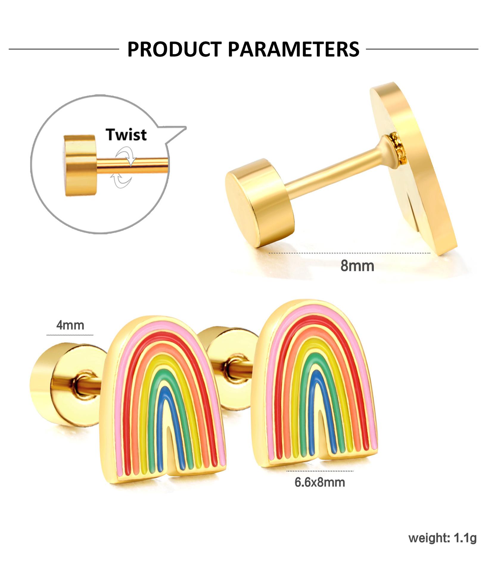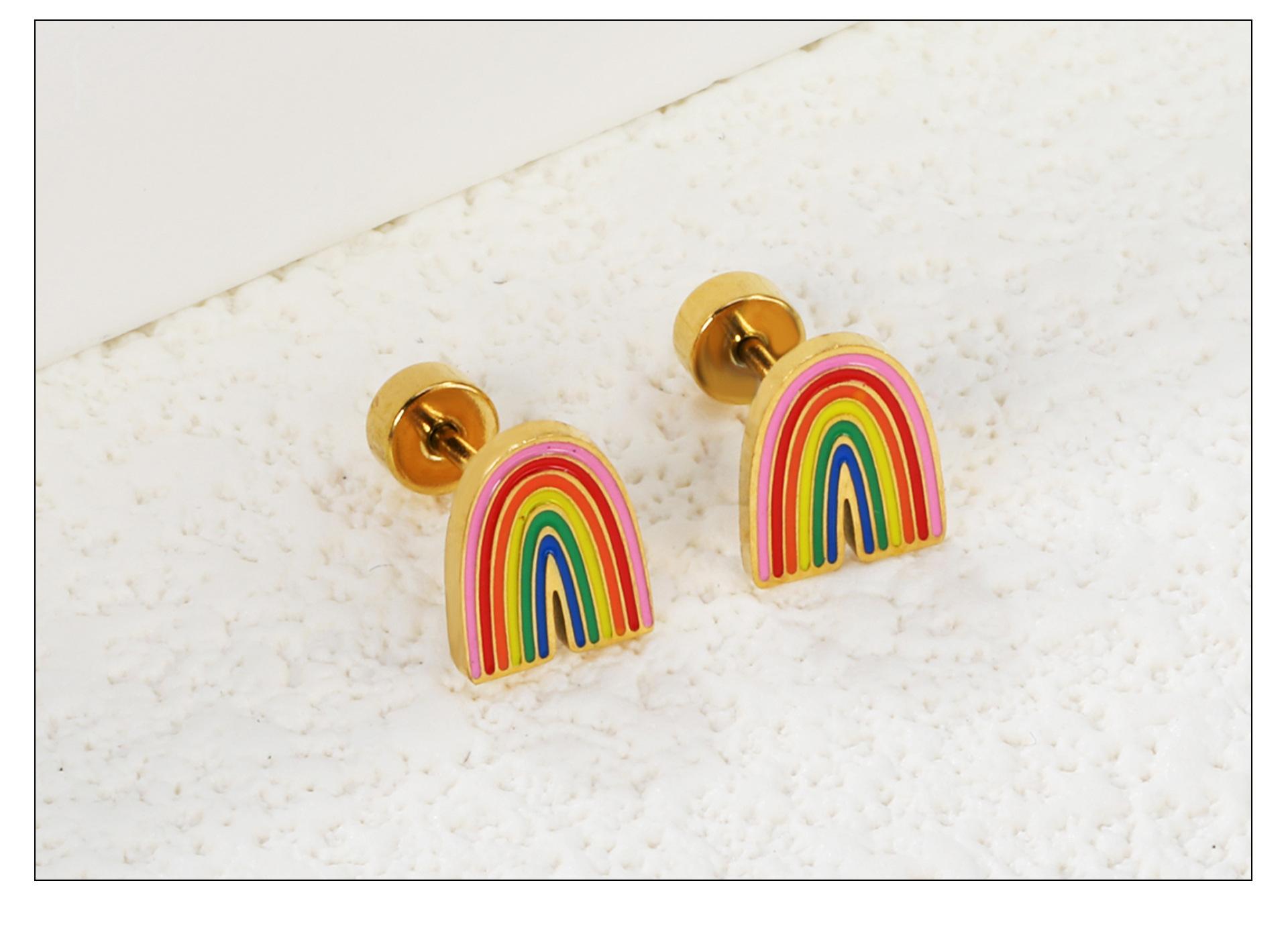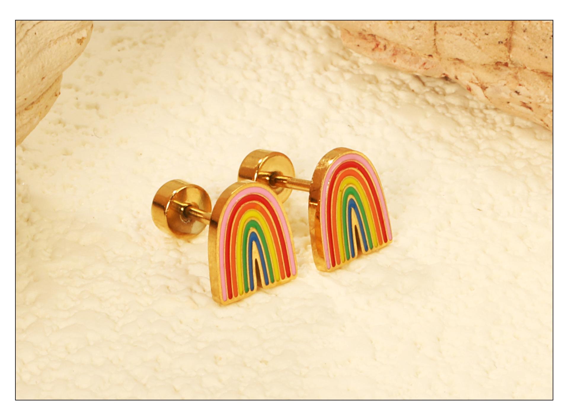 Aliexpress Aretes de Tuerca de Tornillo de Venta Caliente Europeos y Americanos Ins Dulces y Lindos Aretes de Lazo Arcoíris Aretes de Acero Inoxidable para Mujeres