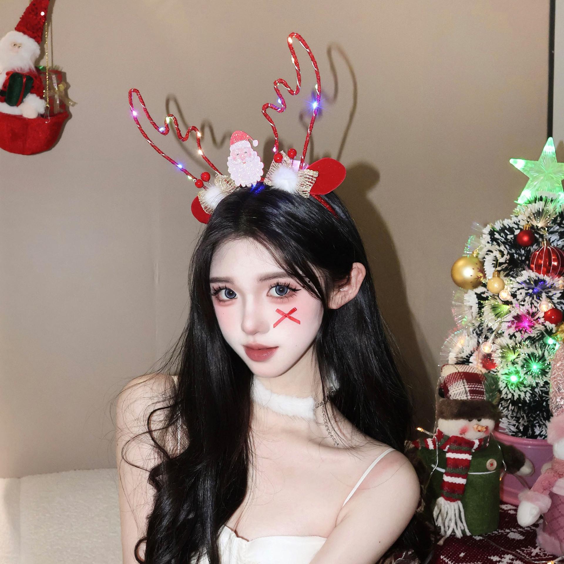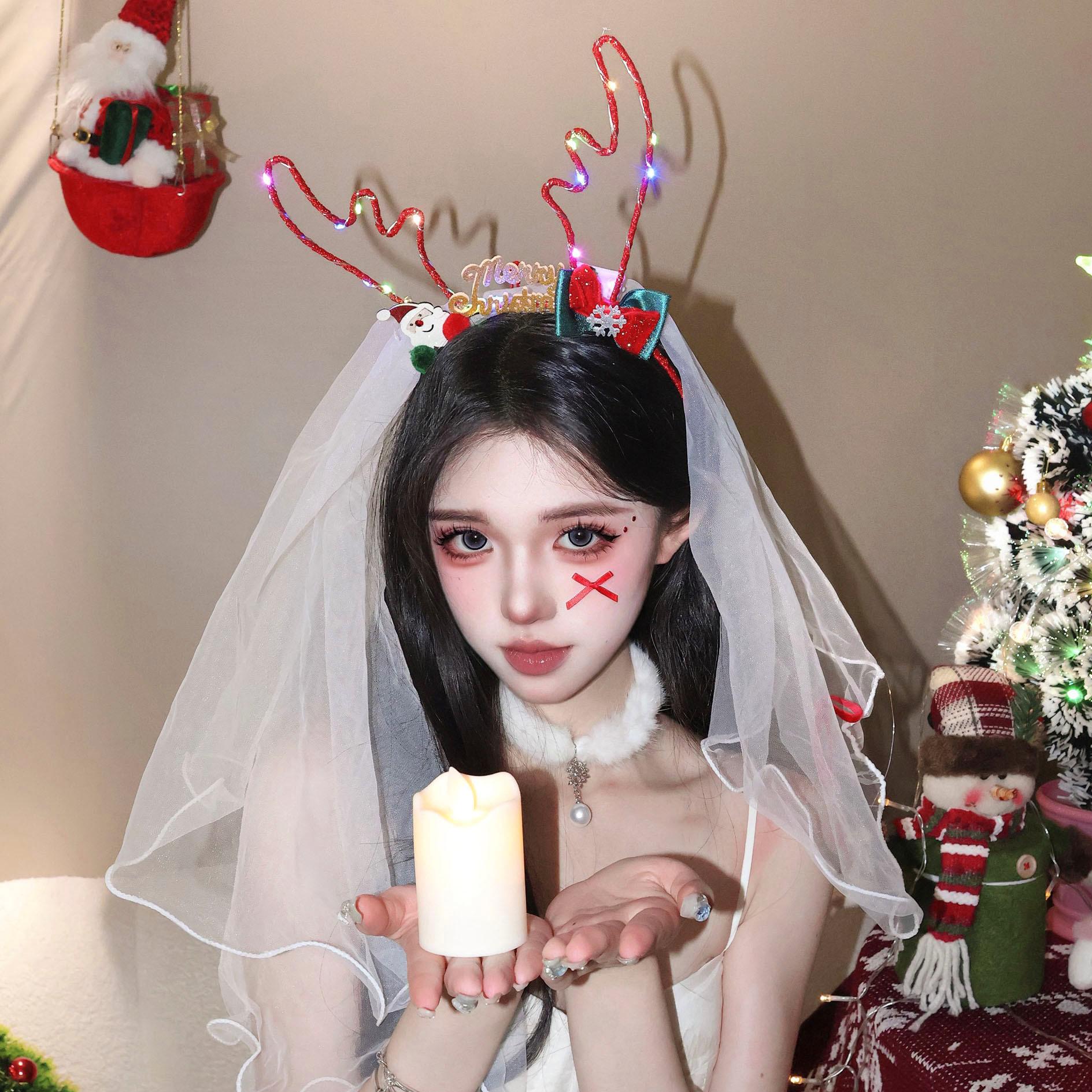 Old man red antler headband-light (ka0114), Snowflake silver antler headband-glowing (ka0113), Red antler veil...