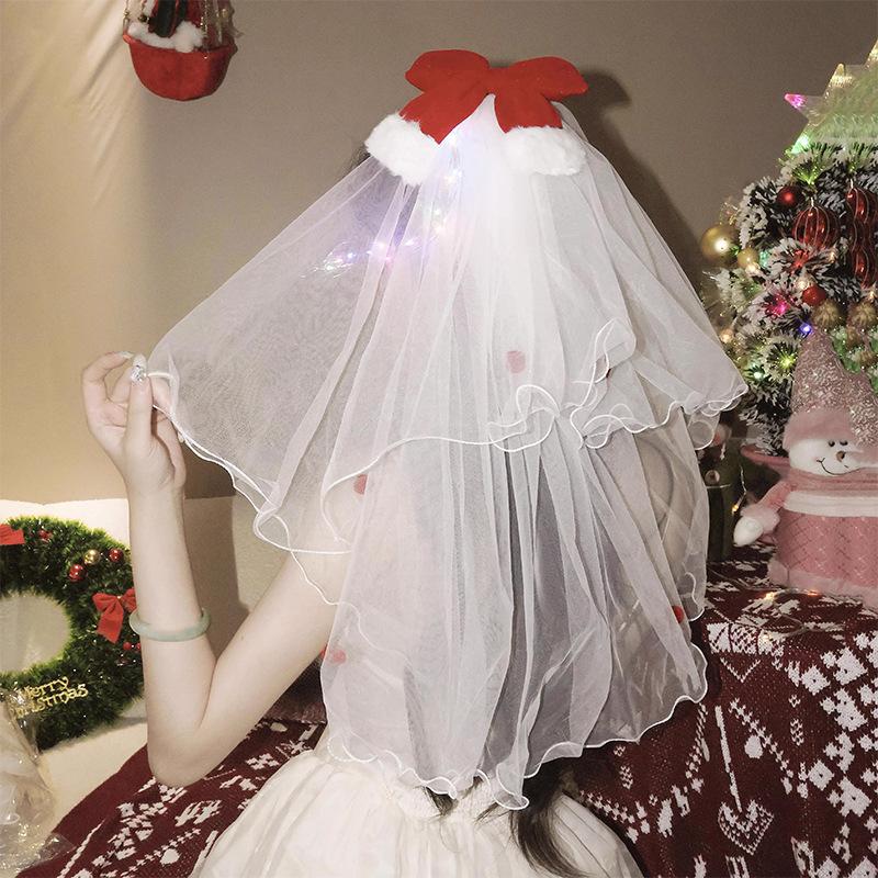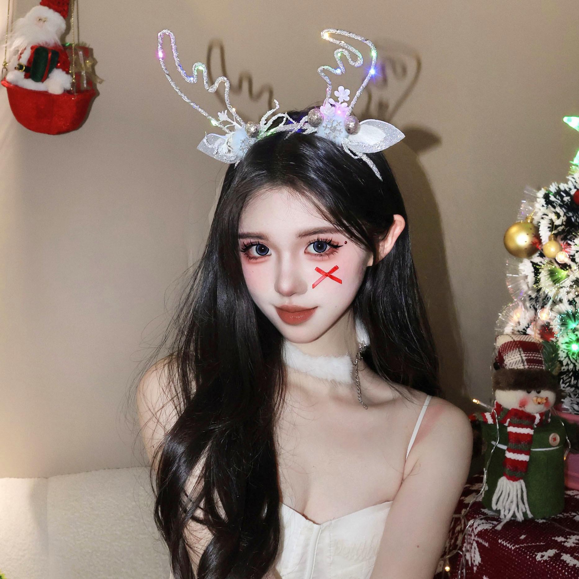 Diadema de astas luminosa navideña para mujer, ambiente festivo, foto, lazo, velo, diadema con copos de nieve