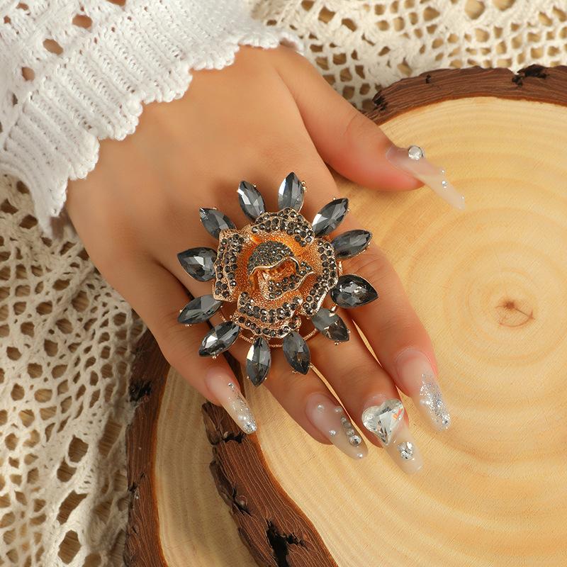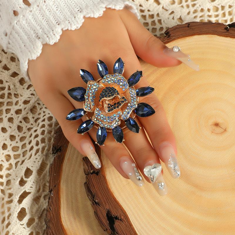 | |  | Anillo de flores con personalidad, de moda, para mujer, con diamantes de cerámica y flores, sencillo, para puestos callejeros, en AliExpress. | 2.20 |