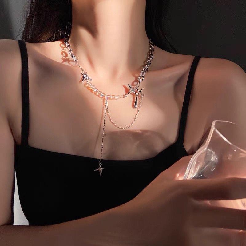 Collar elegante con borlas y cuentas de cadena de clavícula con forma de estrella y gota de agua de Spice Girl, nuevo y a la moda