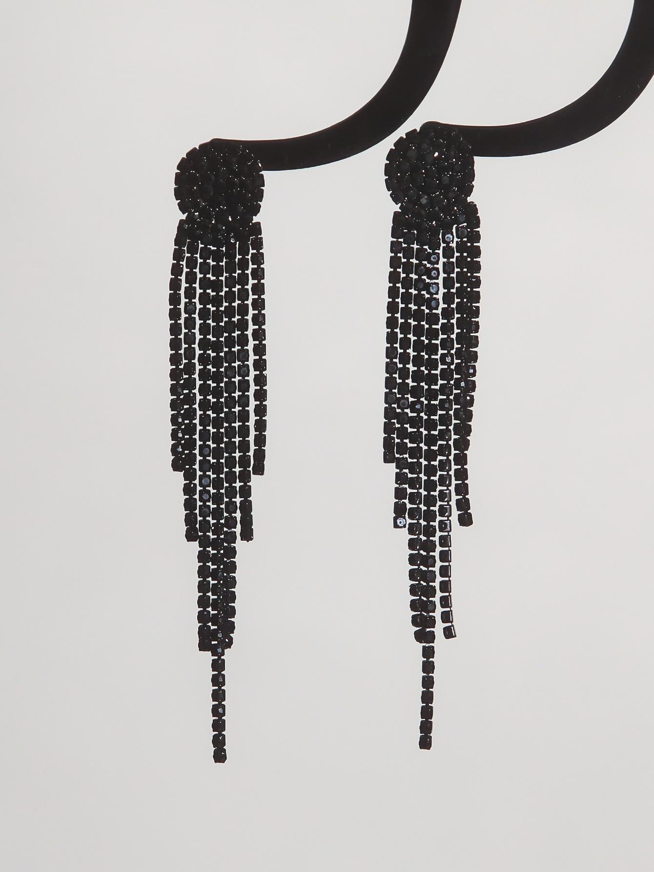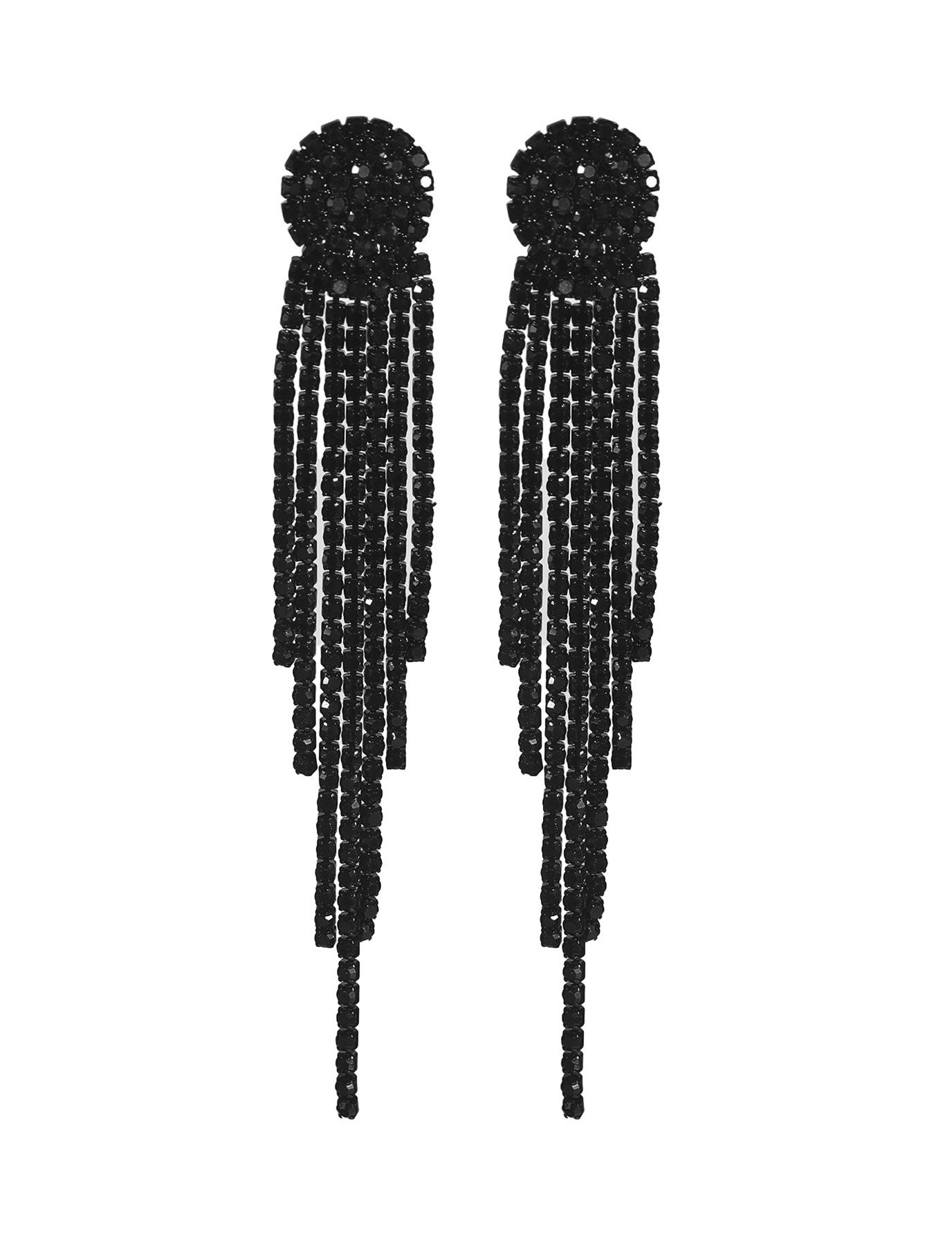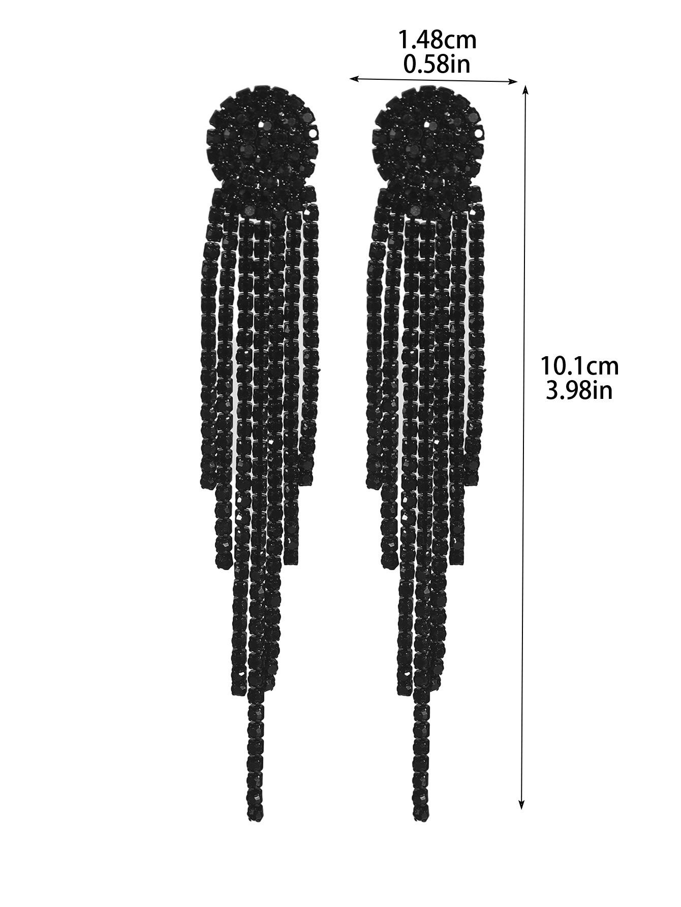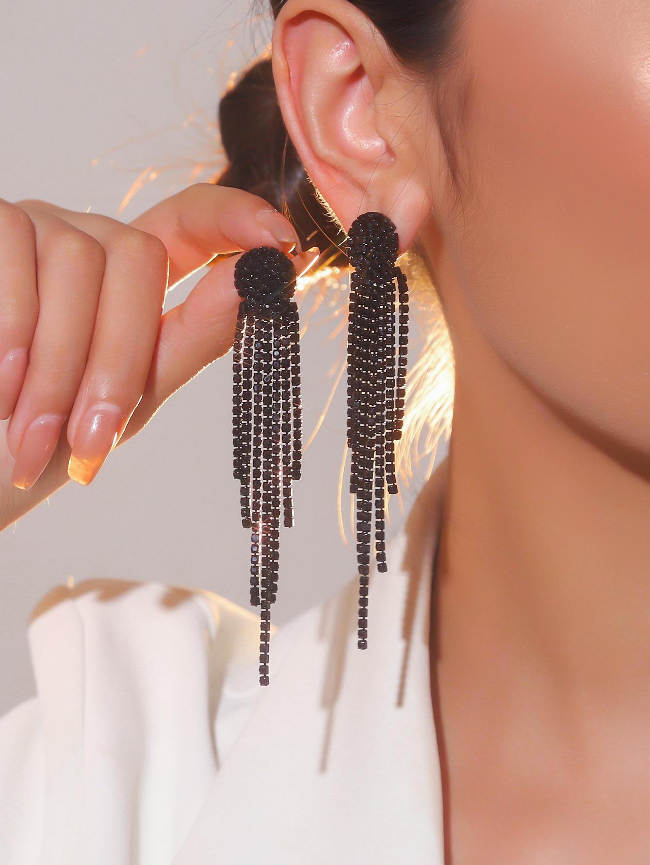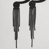 Pendientes largos con borlas negras clásicas transfronterizas europeas y americanas para mujer, pendientes de diamantes brillantes, elegantes accesorios de moda para las orejas.