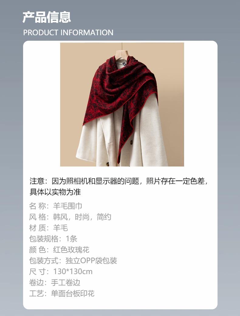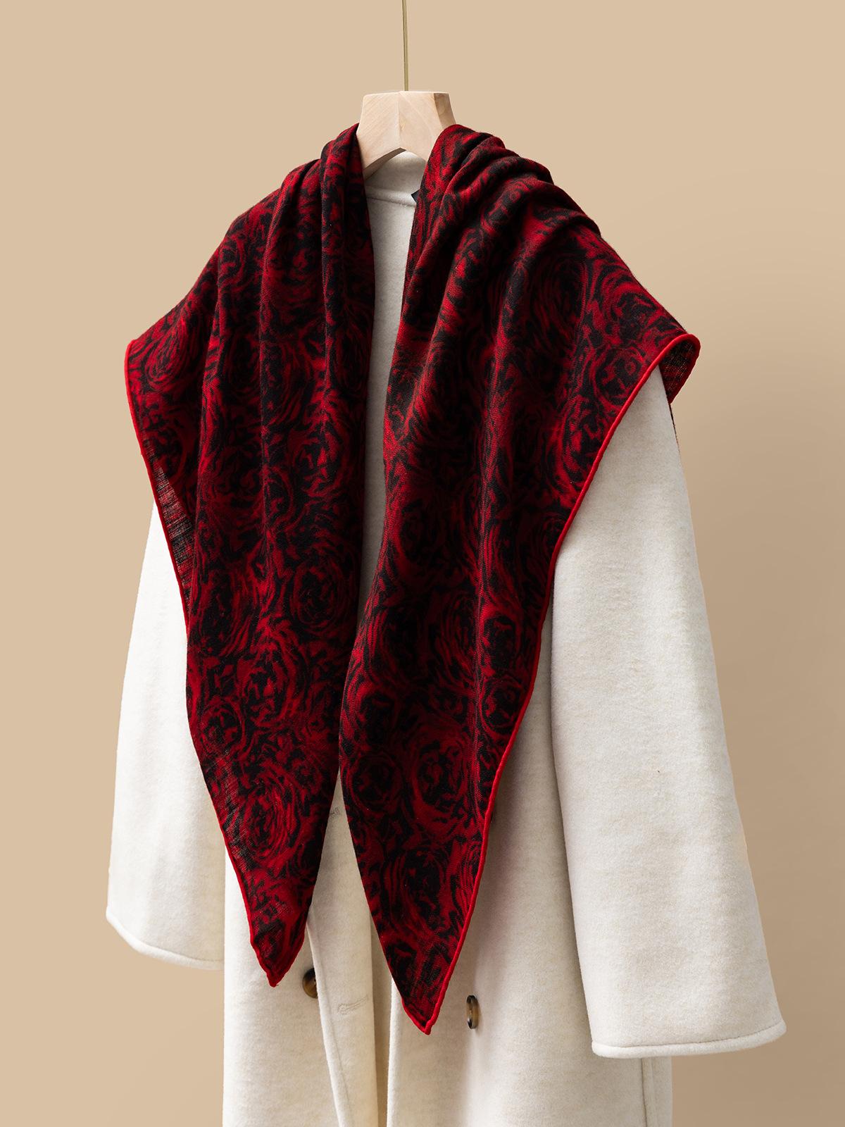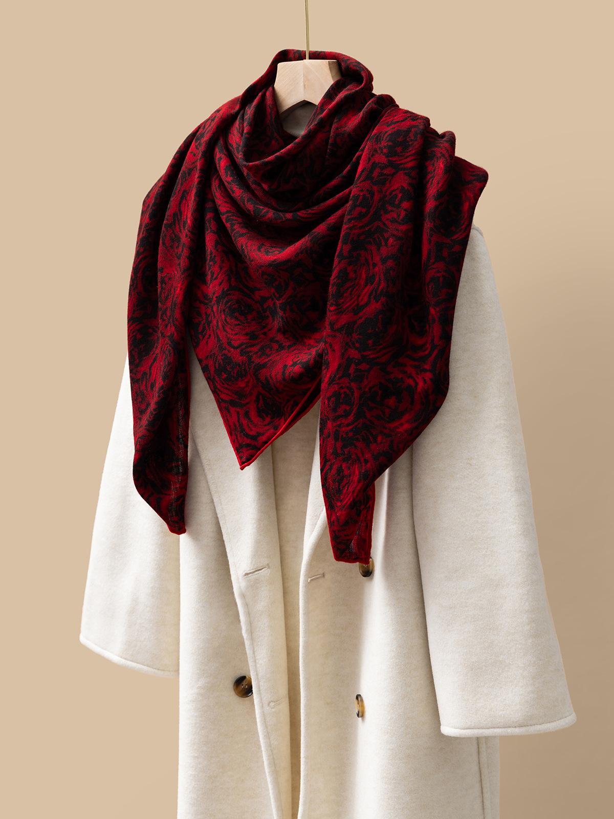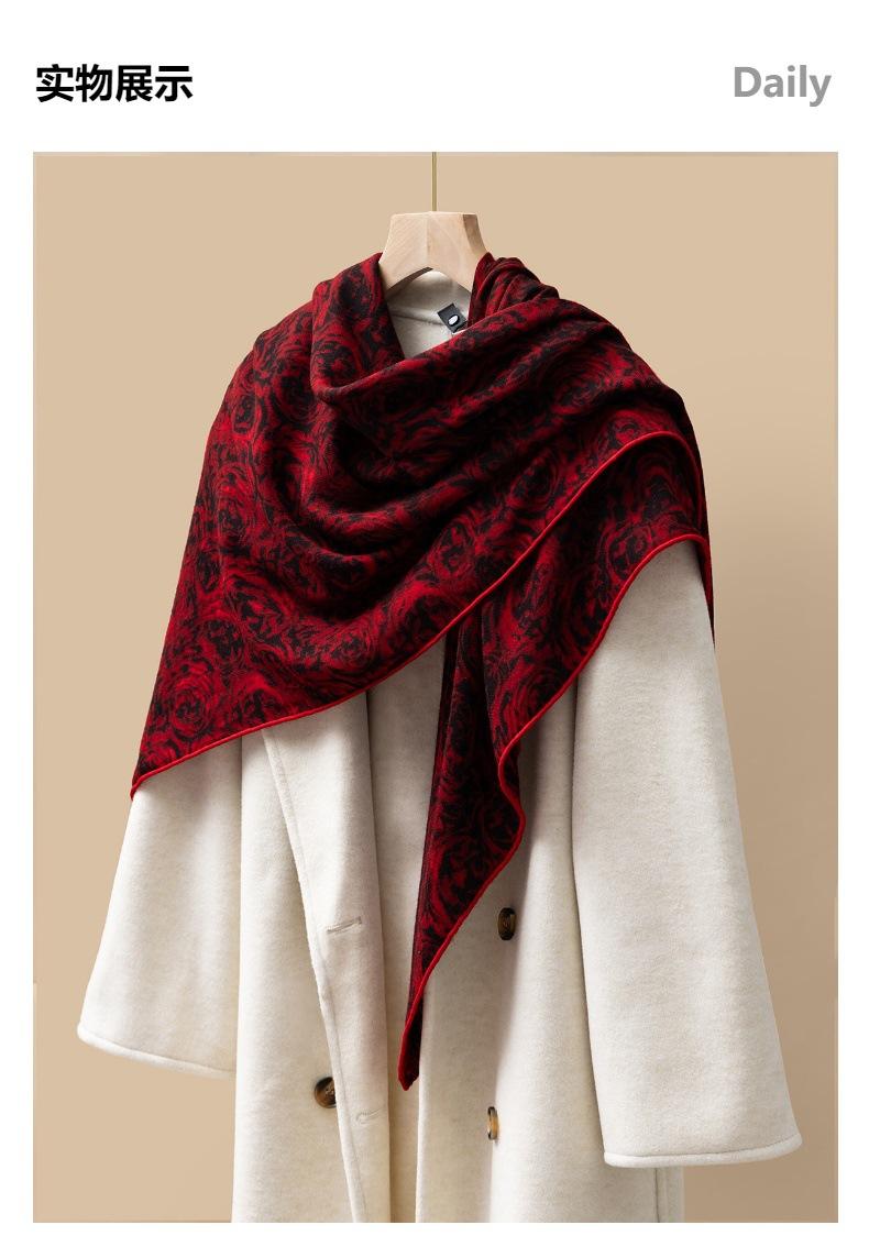 Bufanda de lana de alta calidad con diseño de rosa roja para mujer, ideal como regalo de invierno, chal grande y cálido, ideal para ocasiones especiales, venta al por mayor.