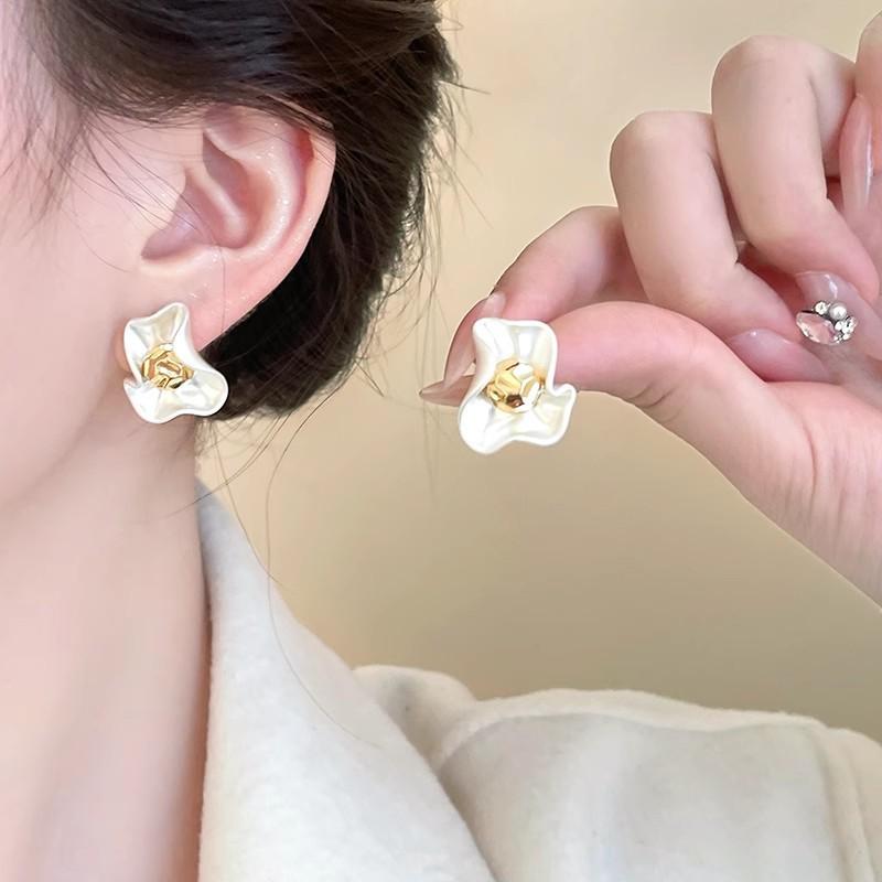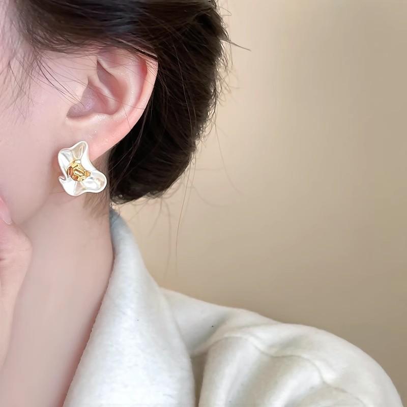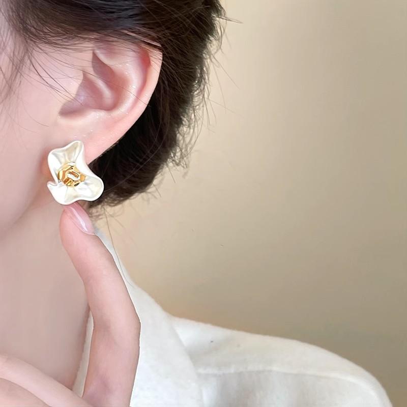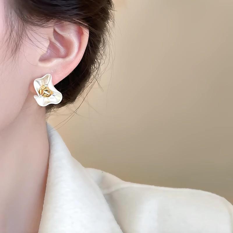 Aretes de Pétalo Mate de Lujo Ligero Aguja de Plata para Mujer 2025 Nuevos Populares Aretes de Alta Gama Diseño Nicho Aretes Únicos
