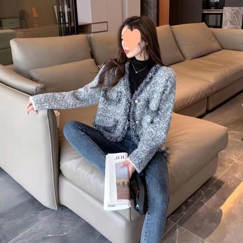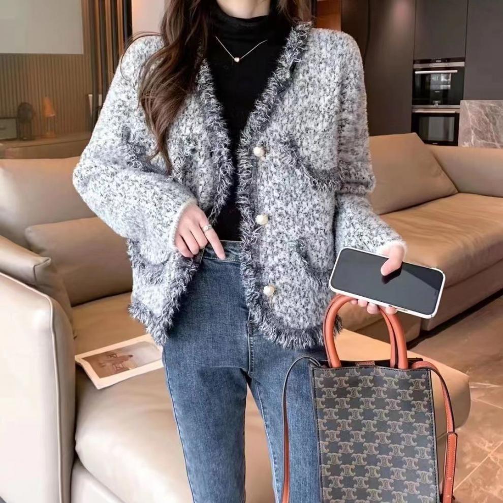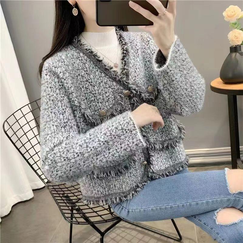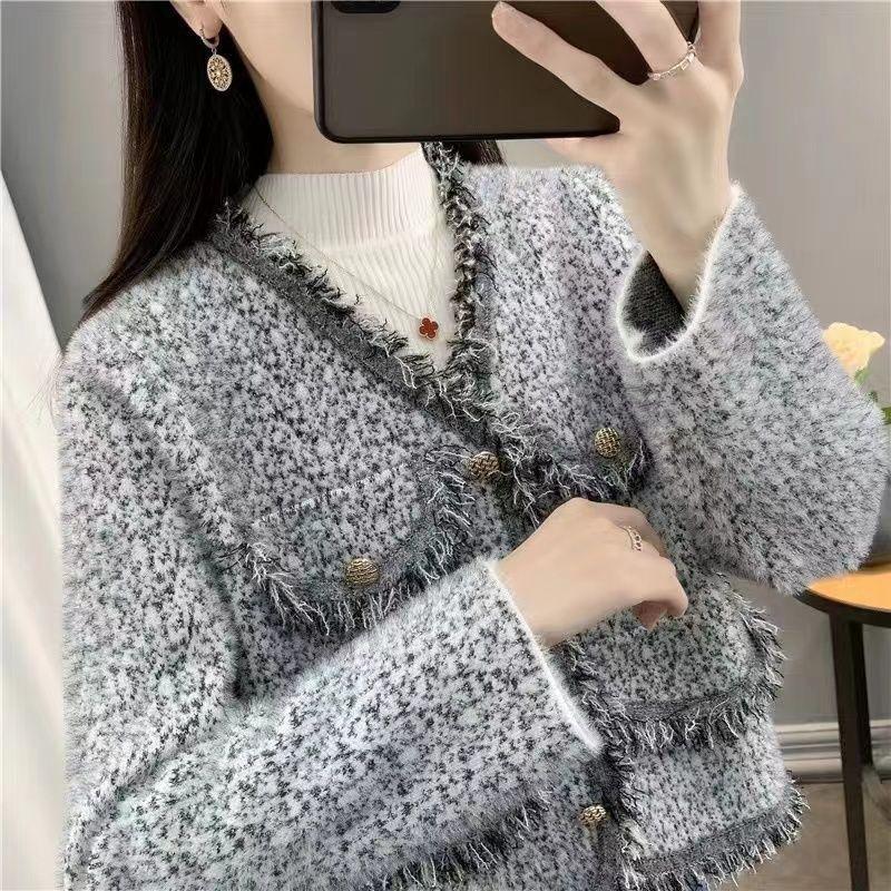 Chaqueta de Mujer Estilo Francés Nuevo 2025 Inspirada en Chanel para Primavera y Otoño, Cárdigan Grueso de Visón Sintético Estilo Chanel, Estilo Coreano Trendy