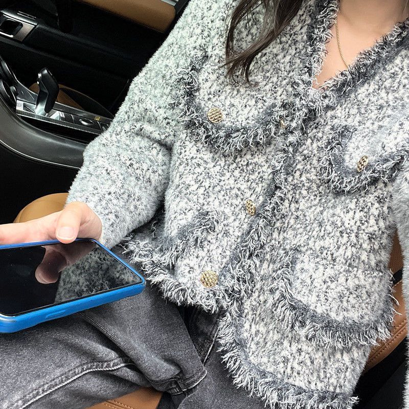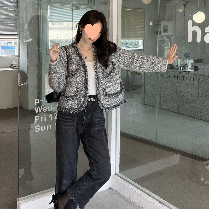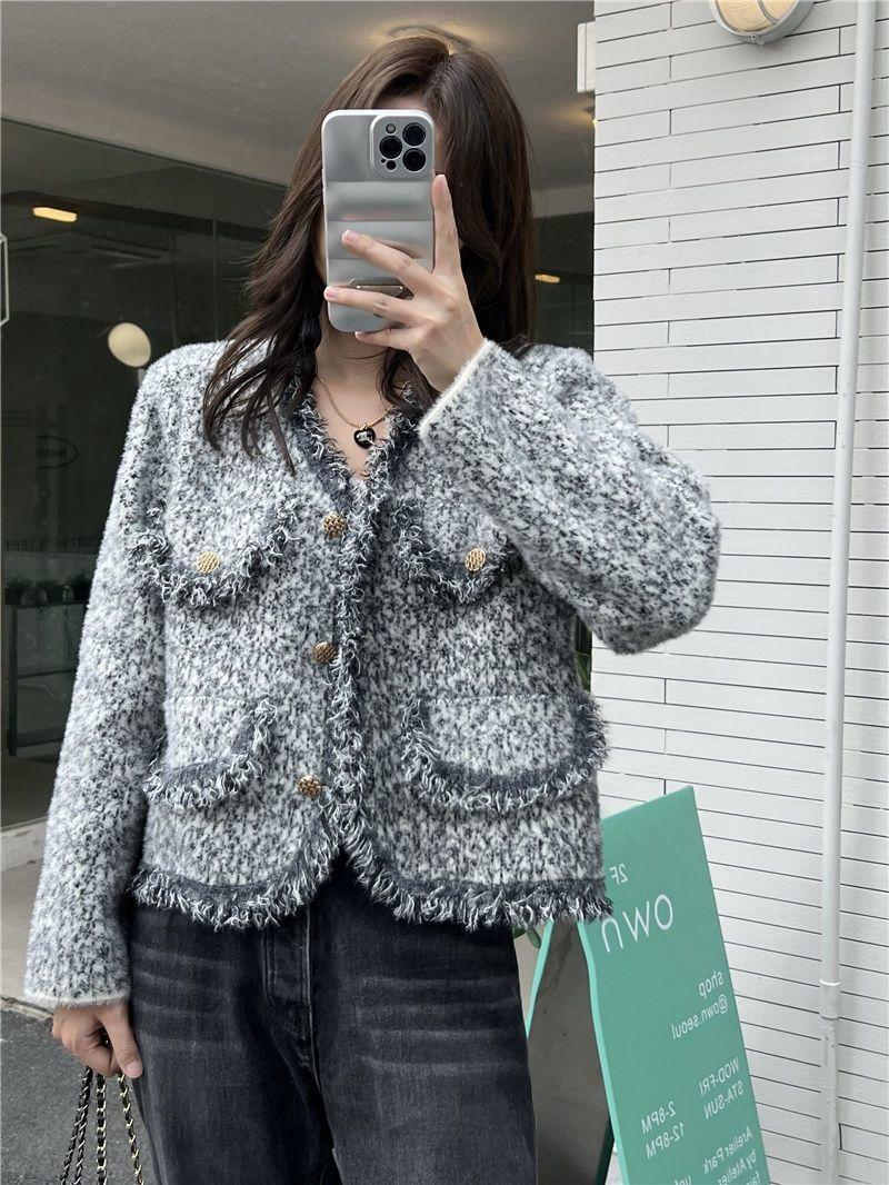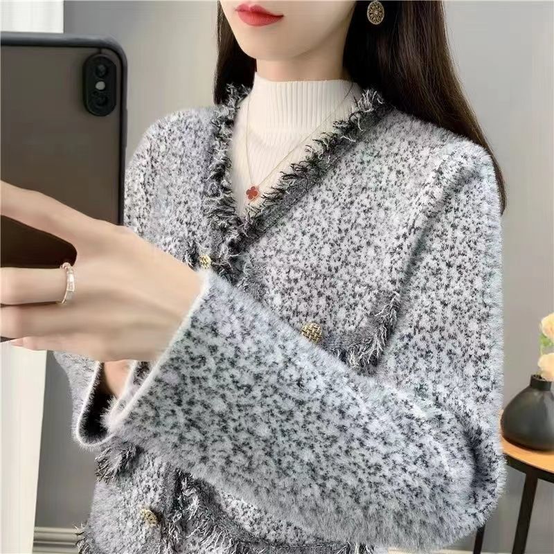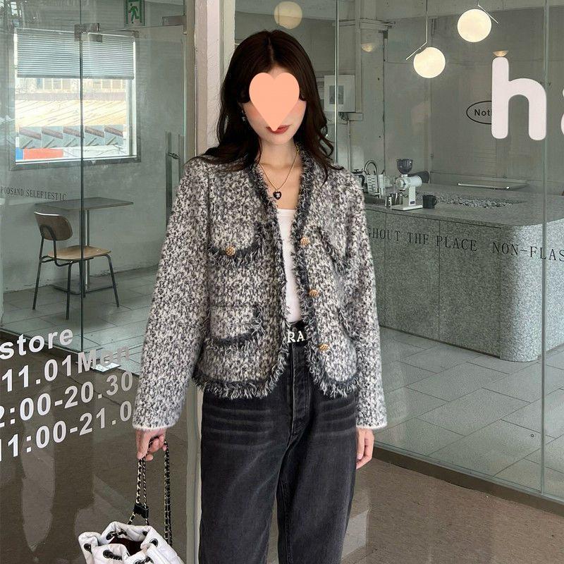 Chaqueta de Mujer Estilo Francés Nuevo 2025 Inspirada en Chanel para Primavera y Otoño, Cárdigan Grueso de Visón Sintético Estilo Chanel, Estilo Coreano Trendy