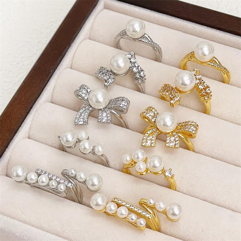 Industria Pesada Arco de Diamantes Completo Zircón de Diamantes Completo Anillo Abierto Lujo Ligero Anillo de Dedo de Perlas de Alta Gama Anillo Elegante Personalizado