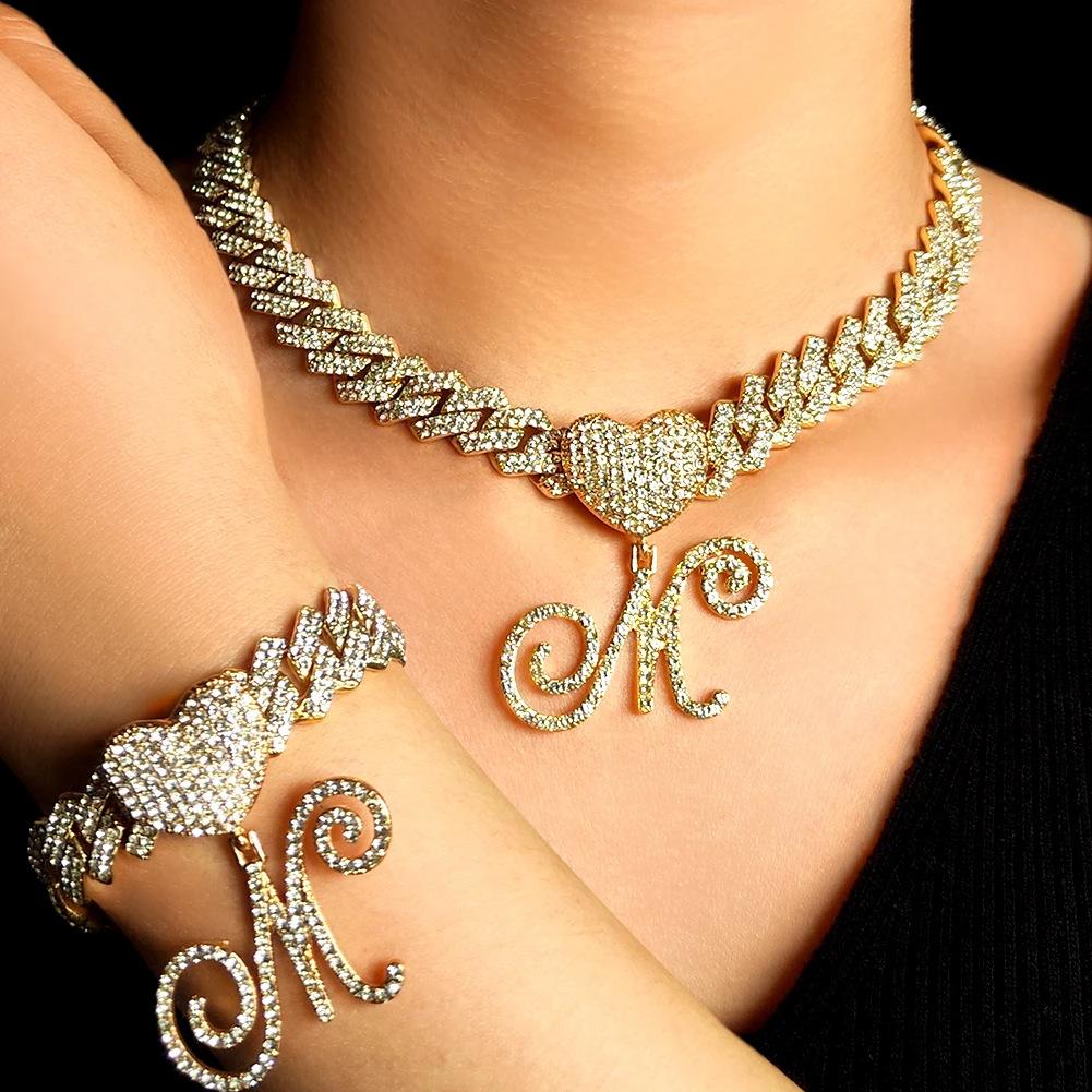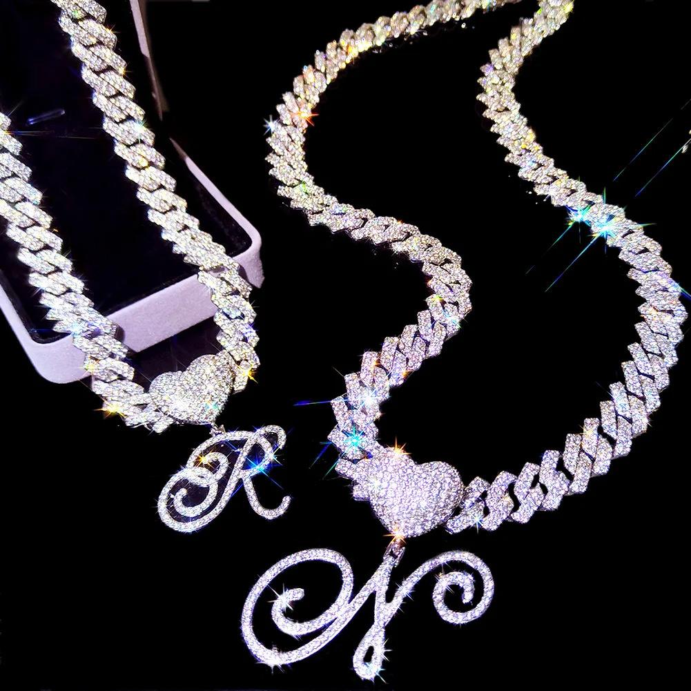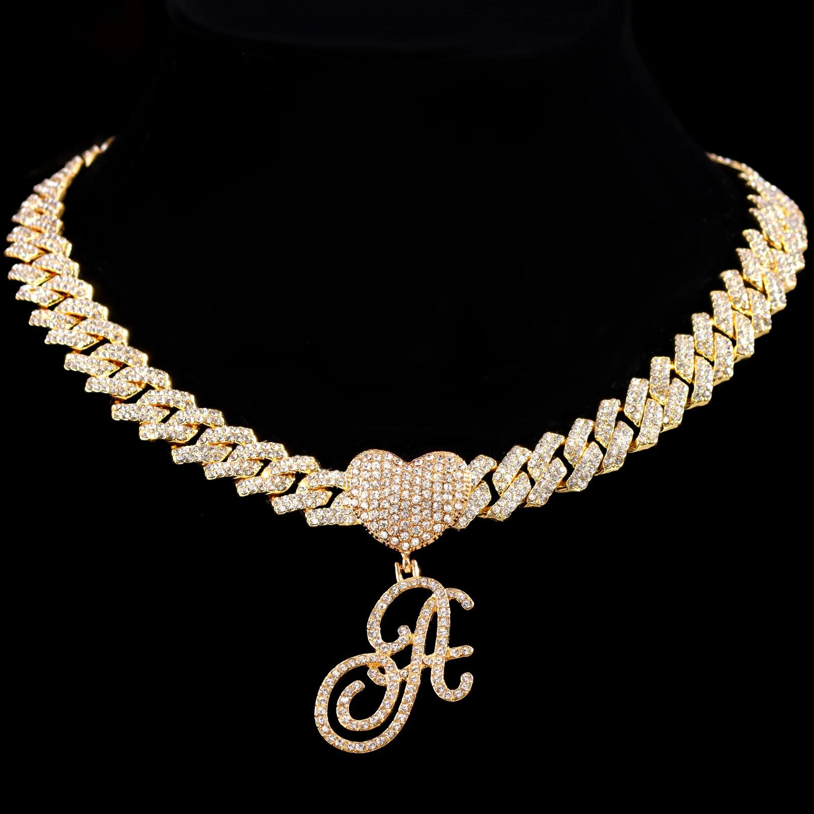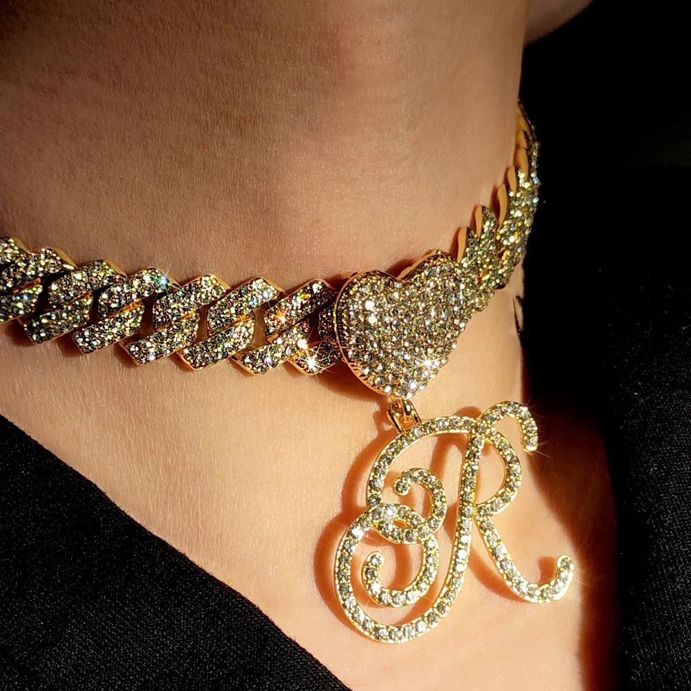 Collar cubano con colgante de 26 letras en inglés, estilo hip-hop transfronterizo, con diamantes de amor, personalidad europea y americana, joyería creativa de rapero.