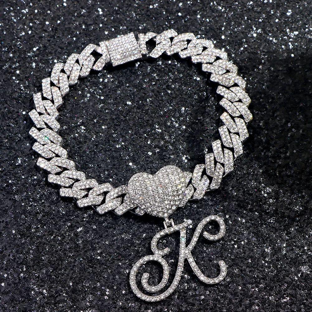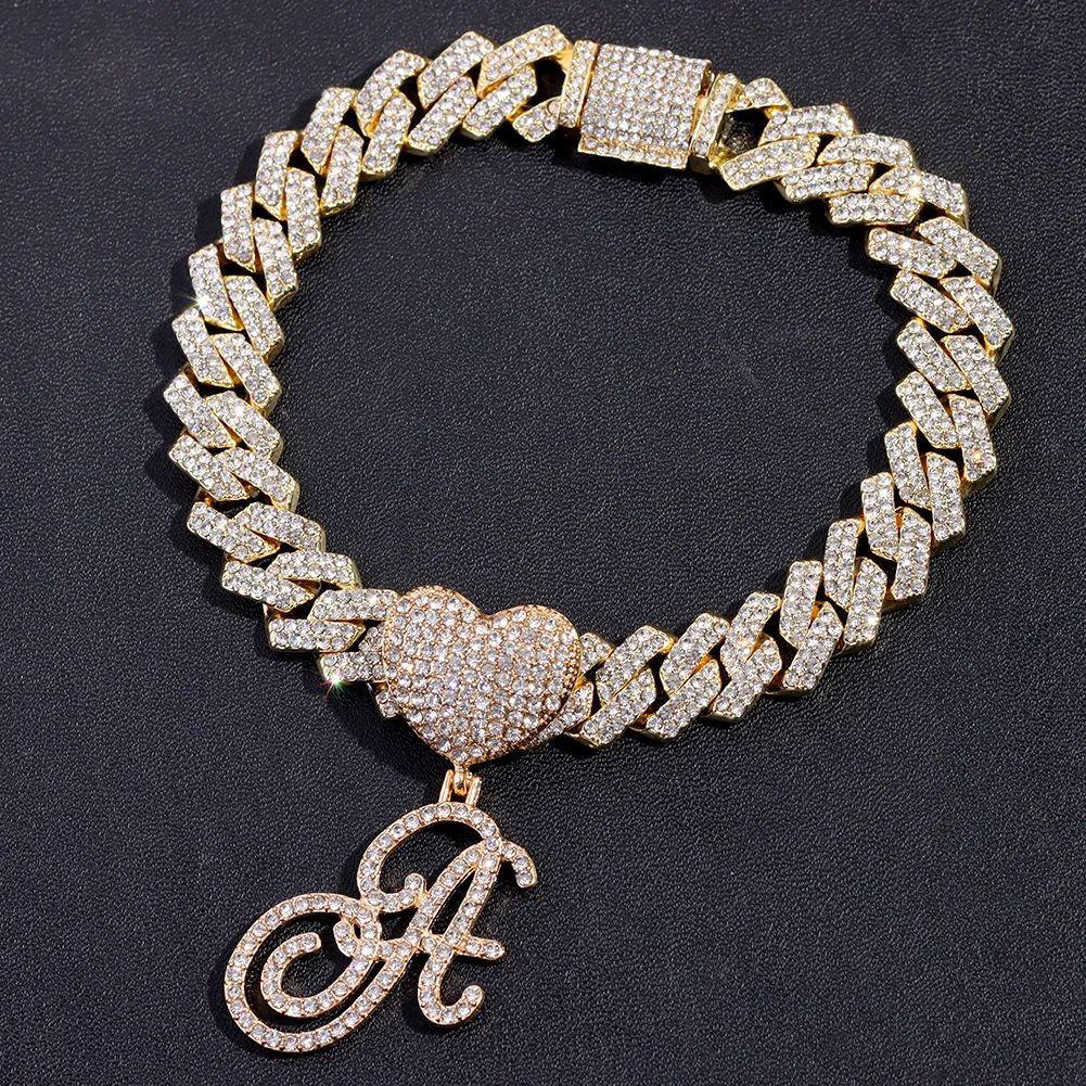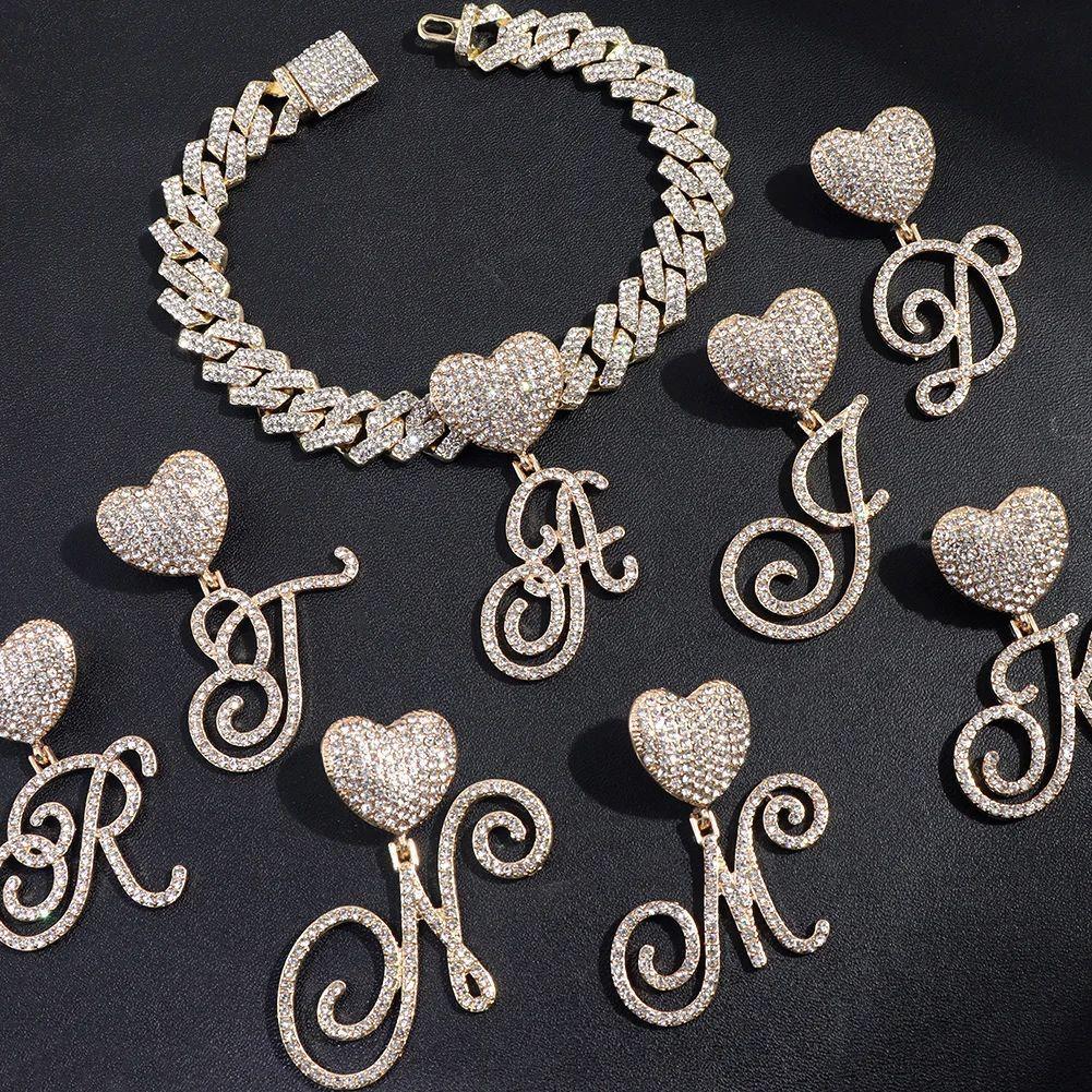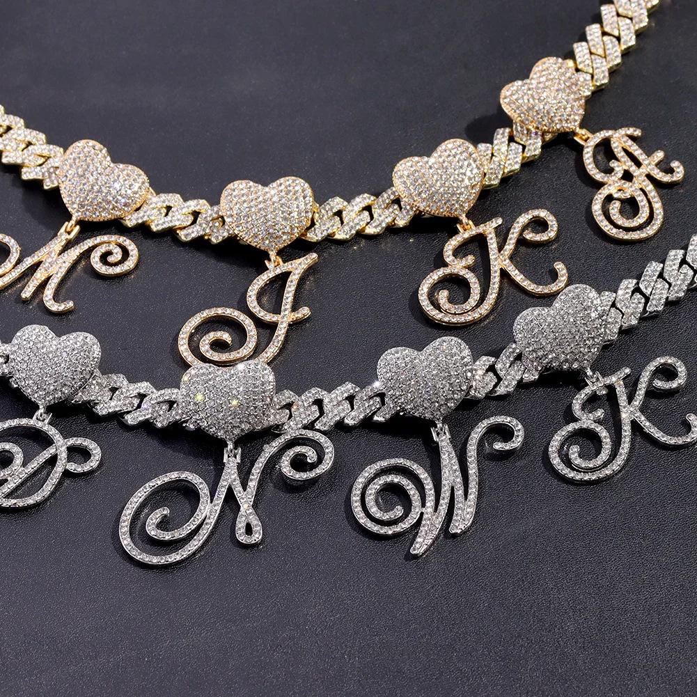 Collar cubano con colgante de 26 letras en inglés, estilo hip-hop transfronterizo, con diamantes de amor, personalidad europea y americana, joyería creativa de rapero.