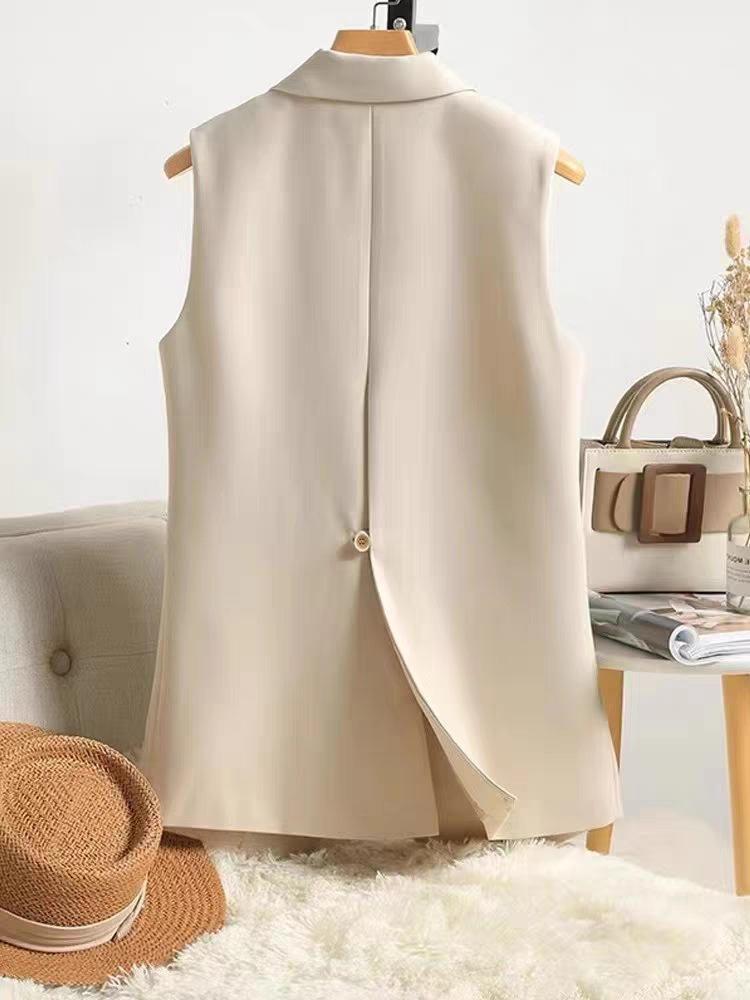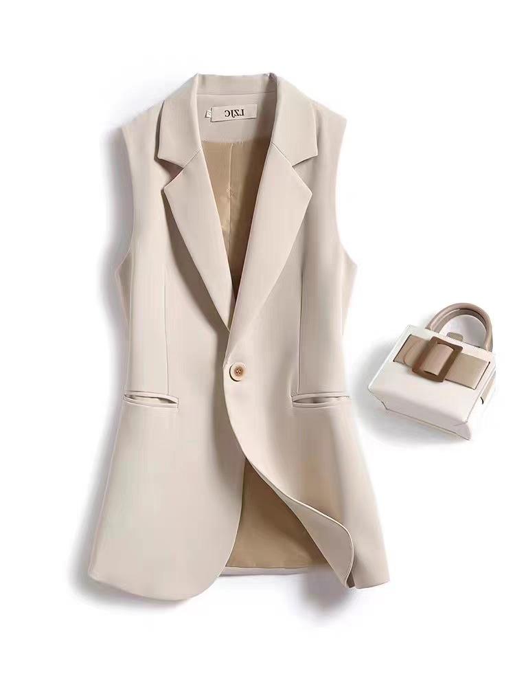 Chaleco de Traje Beige sin Mangas para Mujer Abrigo Holgado Ropa Exterior 2024 Primavera y Otoño Nuevo Chaleco de Alta Gama Chaleco Chaleco