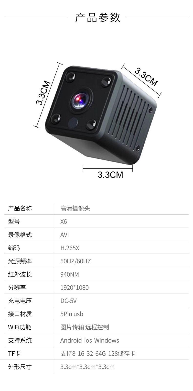Cámara X6 HD Cámara Pequeña Cuadrada Deportes al Aire Libre DV Cámara de Seguridad para el Hogar Monitoreo Cuidado del Bebé