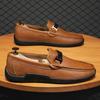 Zapatos de Cuero Transfronterizos para Hombre Transpirables para las Cuatro Estaciones Moda Casual de Negocios Británica Zapatos de Papá Cuero Suave Suela Blanda Zapatos para Conducir