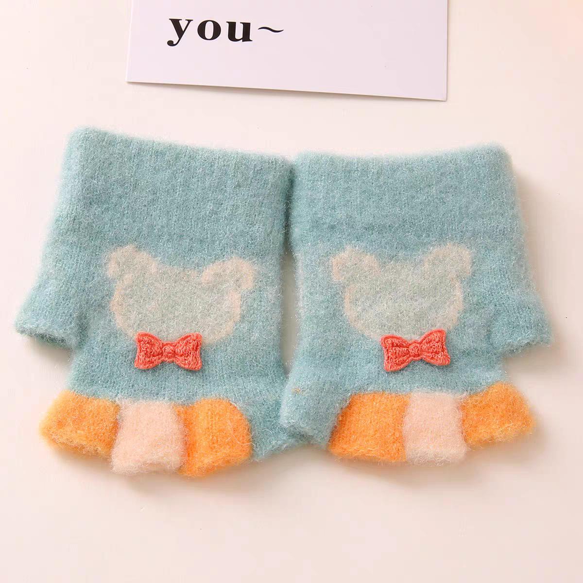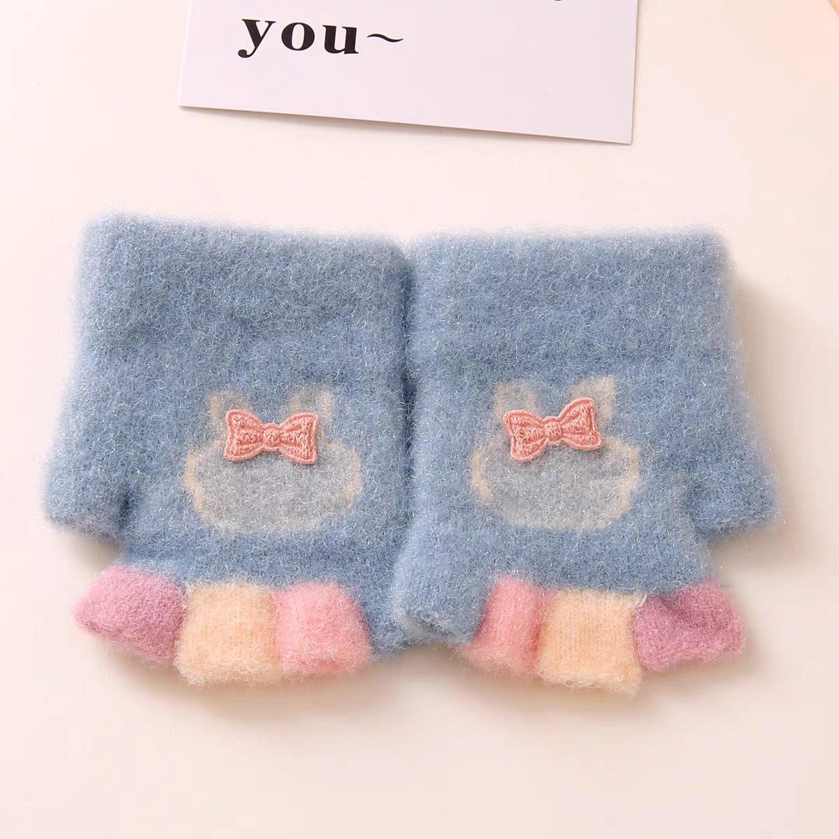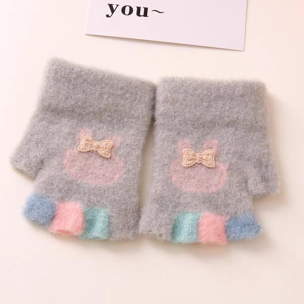 Otoño e invierno nuevos guantes de punto de medio dedo otoño e invierno cálidos lindos guantes de punto de lana cristalina con lazo de dibujos animados con dedo abierto