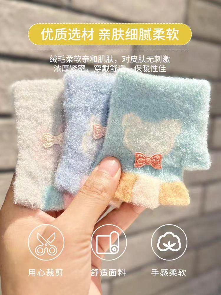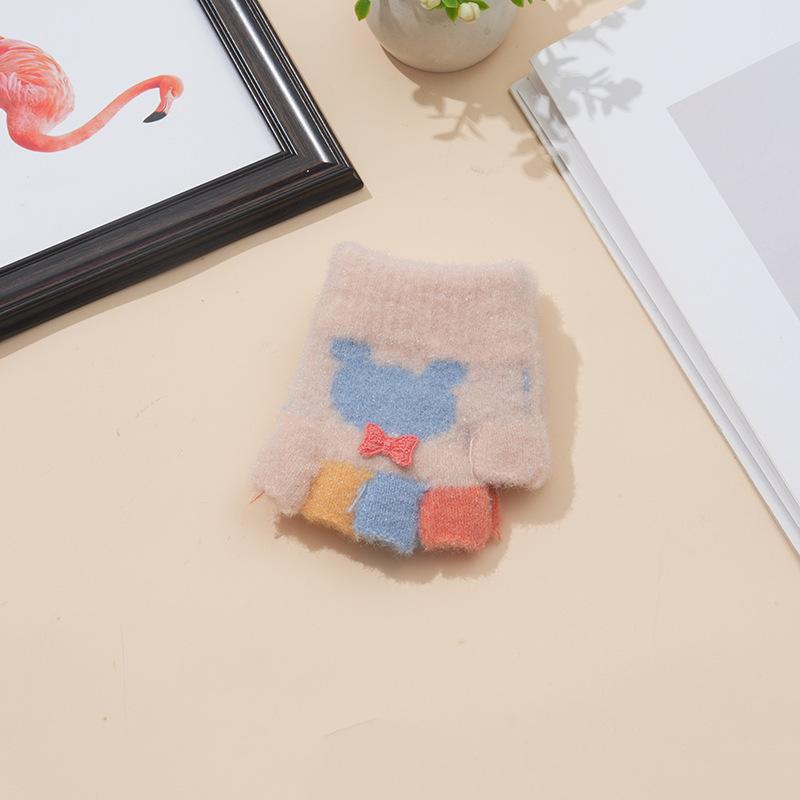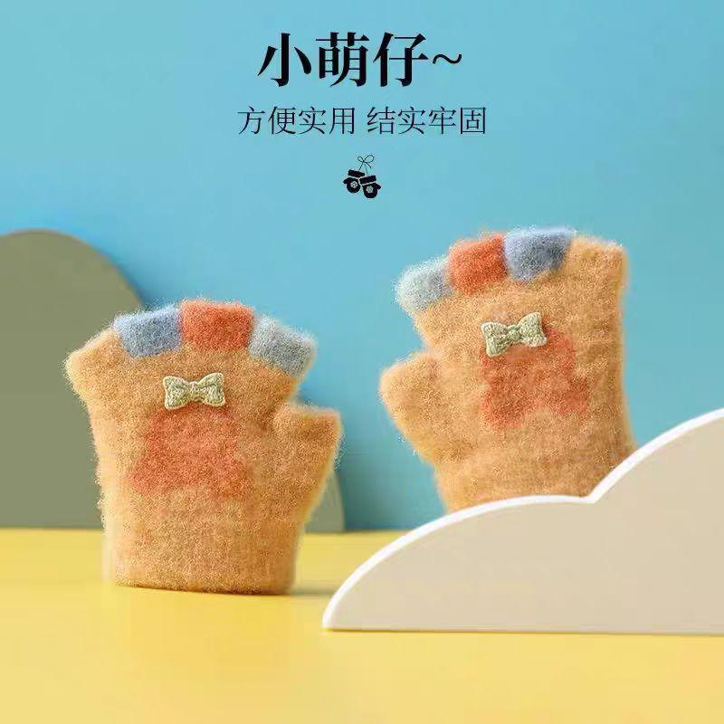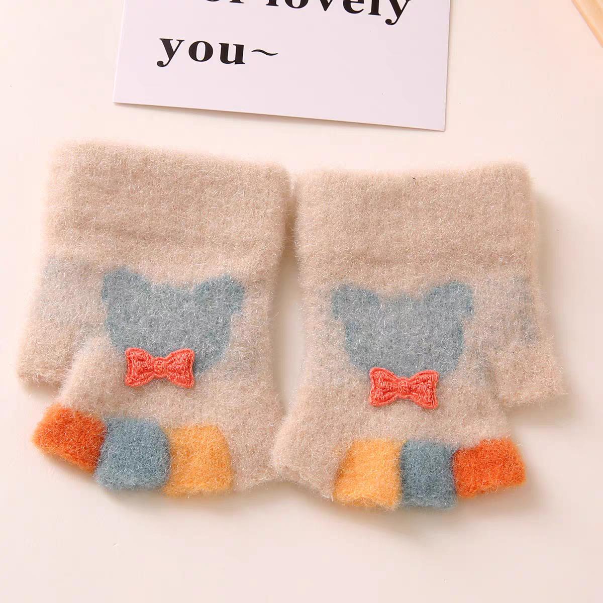 Otoño e invierno nuevos guantes de punto de medio dedo otoño e invierno cálidos lindos guantes de punto de lana cristalina con lazo de dibujos animados con dedo abierto