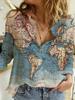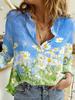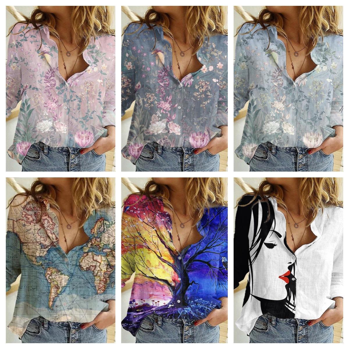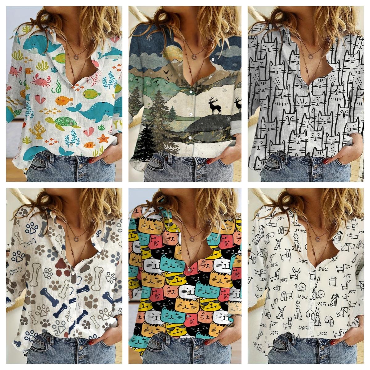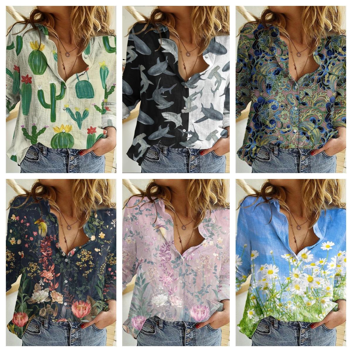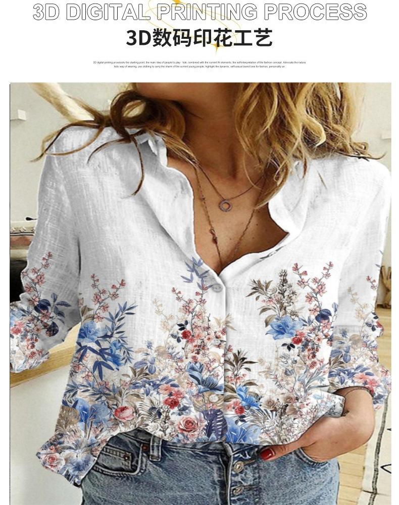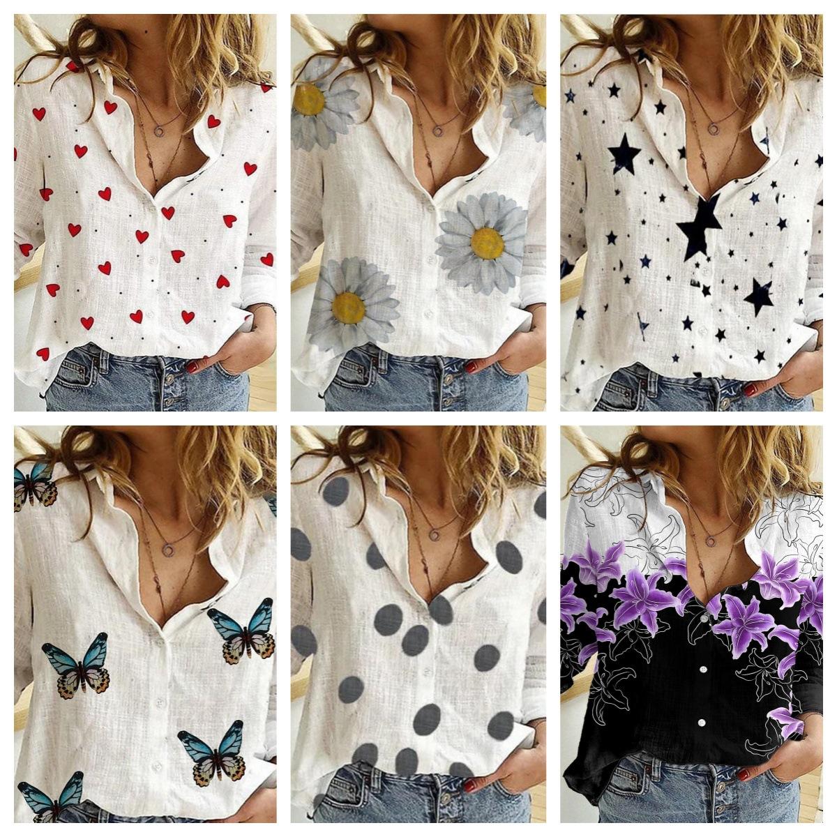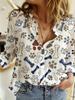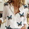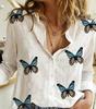 2024 Europeo y Americano Transfronterizo Primavera y Otoño Mujer Estampado 3d Flor Lunares Mariposa Vacaciones Manga Larga Lel Camisa Casual