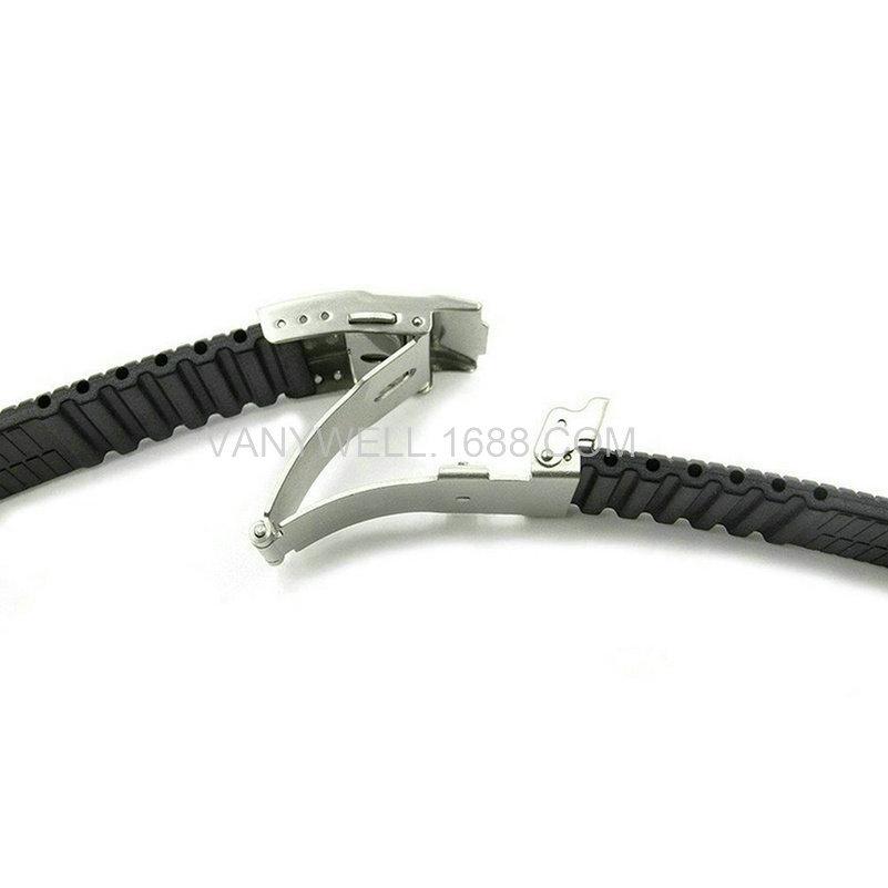 Correa de reloj de silicona de alta gama de 22 mm de dos secciones con hebilla plegable, adecuada para relojes de moda para hombres y mujeres, relojes casuales, relojes japoneses y otros estilos. Esta correa de reloj tiene un tacto suave y muy pocos bordes ásperos, y es de alta calidad. La longitud se puede ajustar cortando.