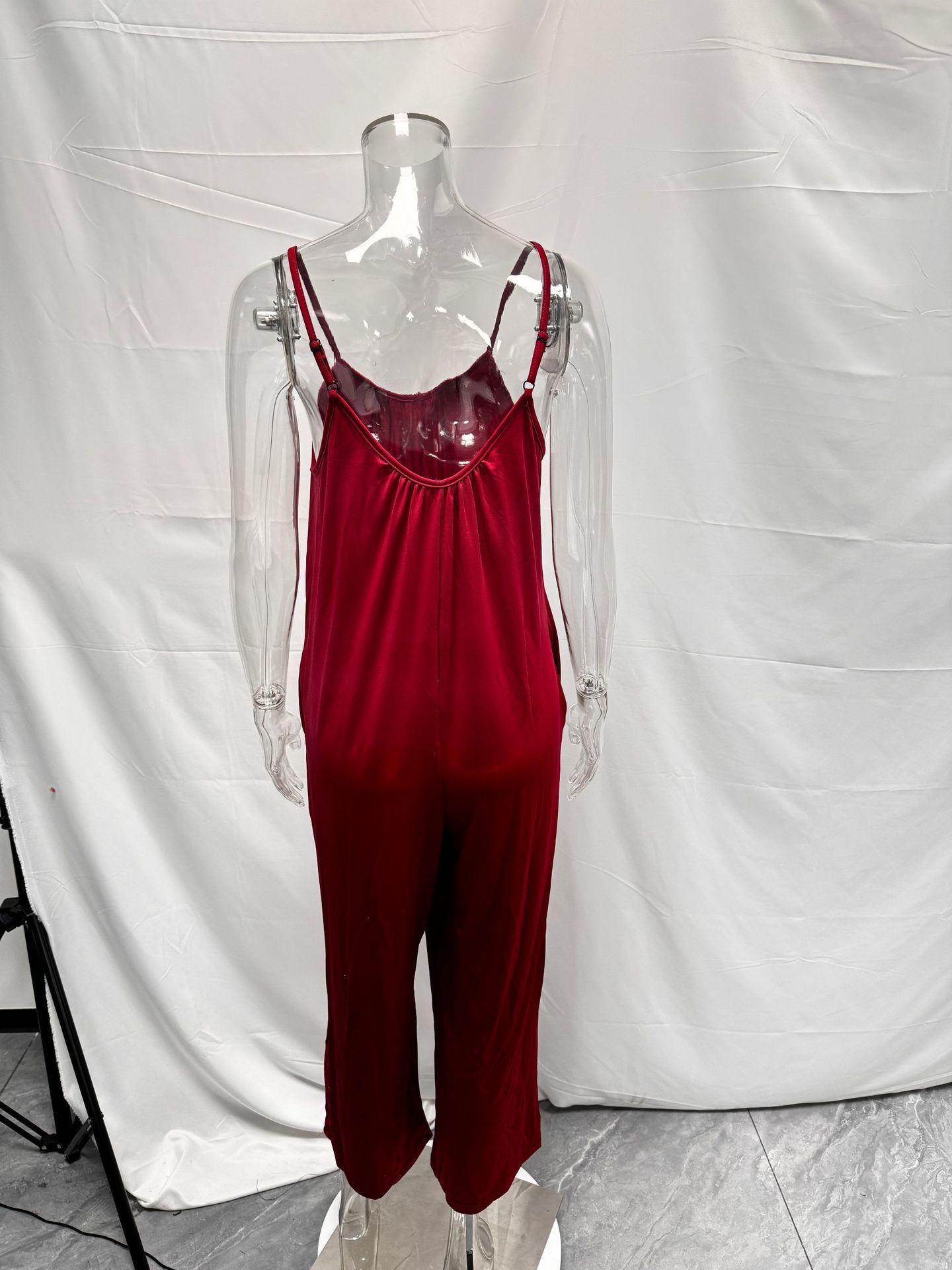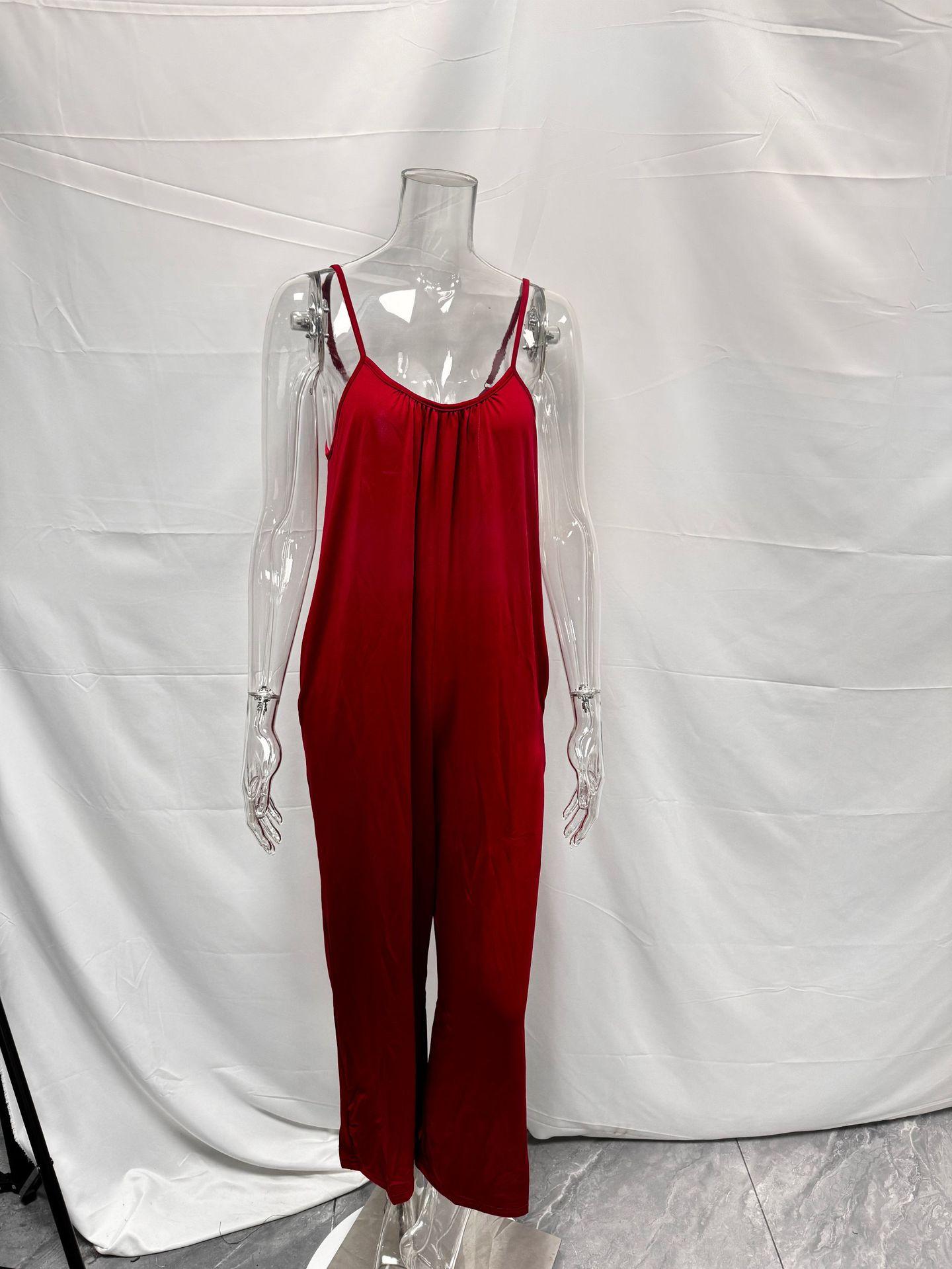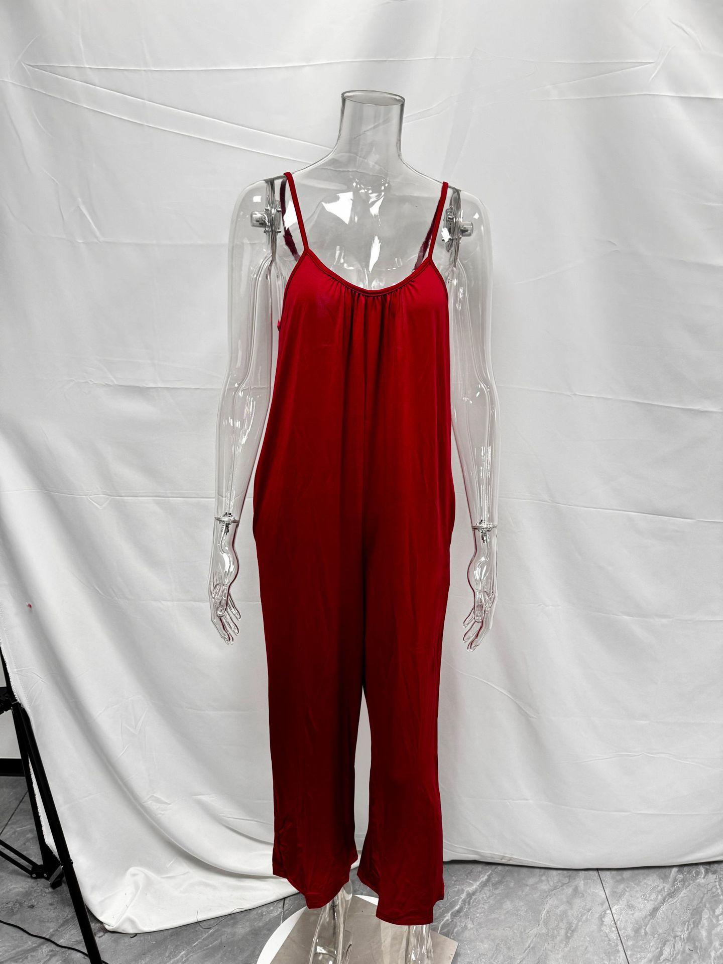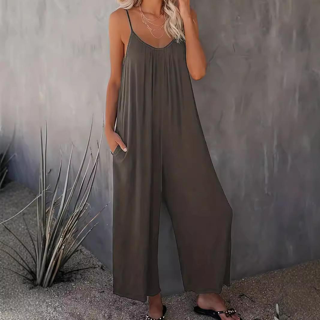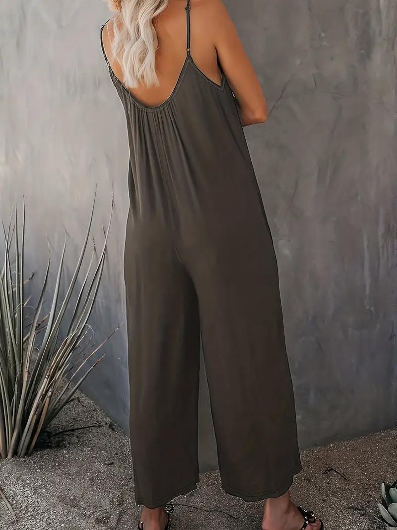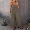 Mono de verano para mujer, estilo europeo y americano, de color liso, con tirantes, holgado, con doble bolsillo y pierna ancha, ¡lo más vendido en 2024!