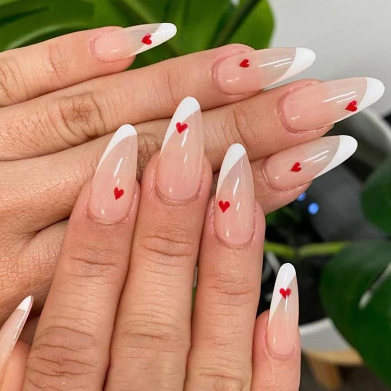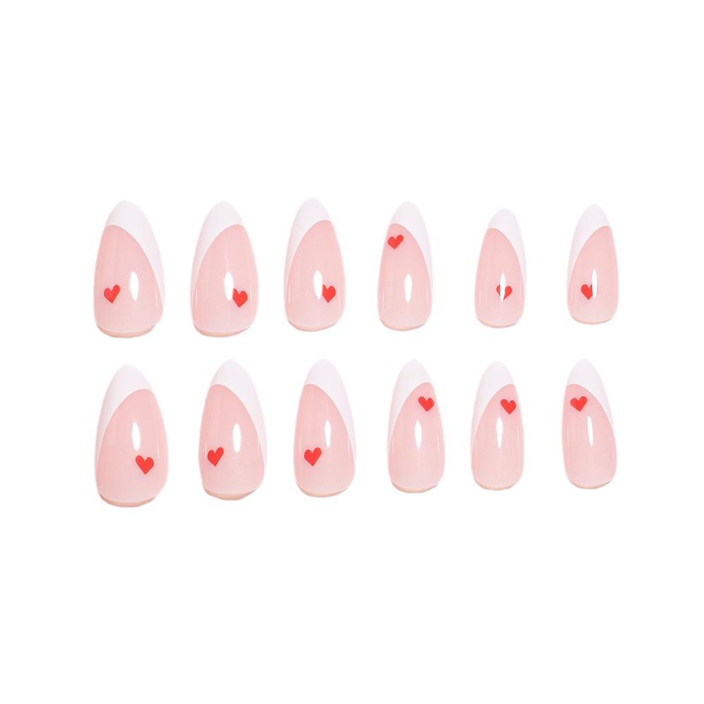 Manicura de San Valentín, diseño francés con borde blanco, rojo, pequeño, con diseño de amor, para usar en uñas, simple, a la moda, con parche para uñas.