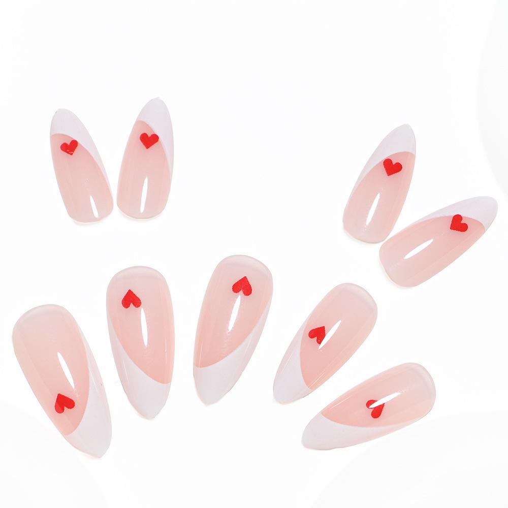 Compra Manicura de San Valentín, diseño francés con borde blanco, rojo, pequeño, con diseño de amor, para usar en uñas, simple, a la moda, con parche para uñas. al por mayor en Joom.pro