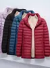 Chaqueta parker larga con capucha y relleno de algodón, forrada con vellón grueso, otoño e invierno 2024, 1020