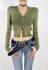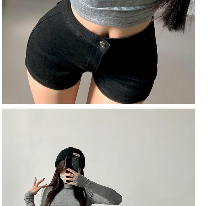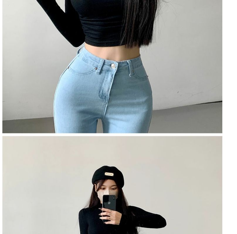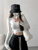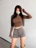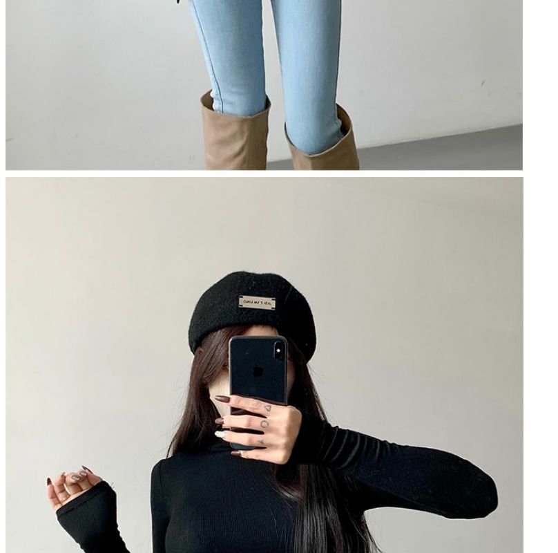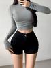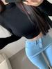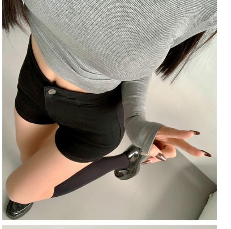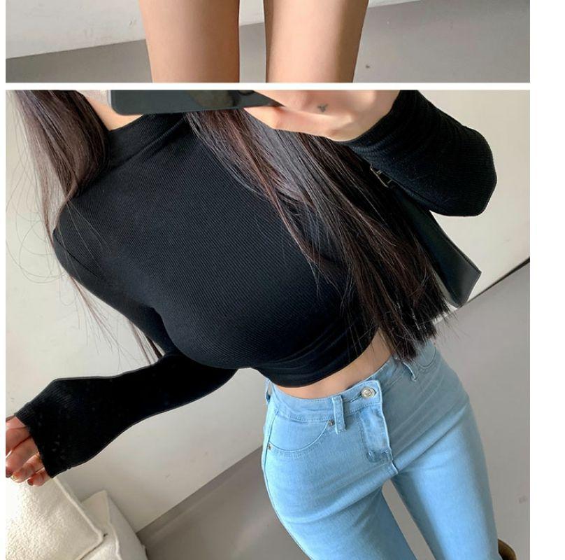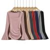 Camiseta de manga larga estilo Spice Girl, estilo europeo y americano, con cuello alto, corte entallado y diseño plisado lateral para mujer, color liso