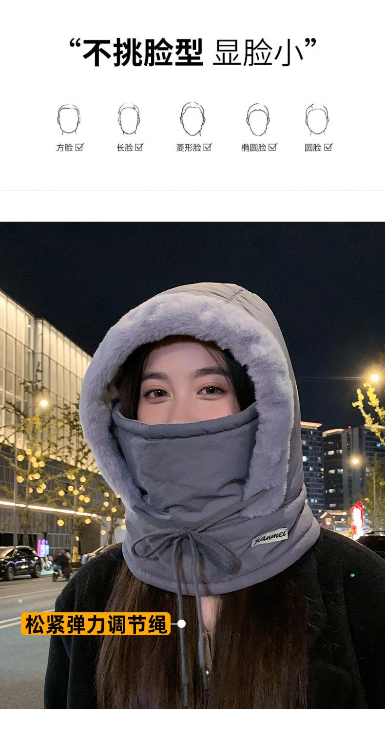 Gorro Lei Feng de invierno cálido con forro polar y protección auditiva para mujer, con gran circunferencia de cabeza, para esquí, snowboard, máscara de viento y nieve, con cuello integrado.
