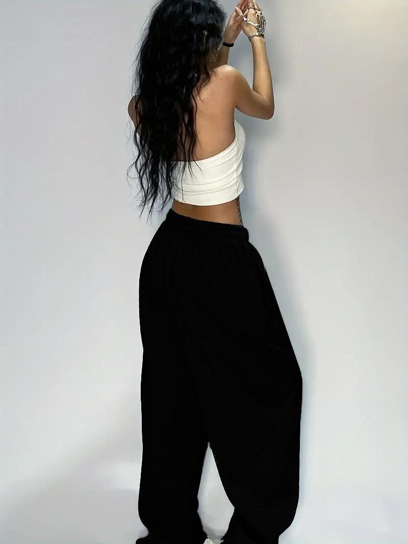 Pantalones deportivos para mujer 2025 American Hip-Hop Retro Jazz Street Dance Joggers Casual Holgados con Cordón de Ajuste Pantalones de Pierna Ancha