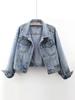 Chaqueta de mezclilla azul con solapa para mujer 2025 Otoño Nueva Moda de alta gama Retro Suelta Casual Chaqueta corta