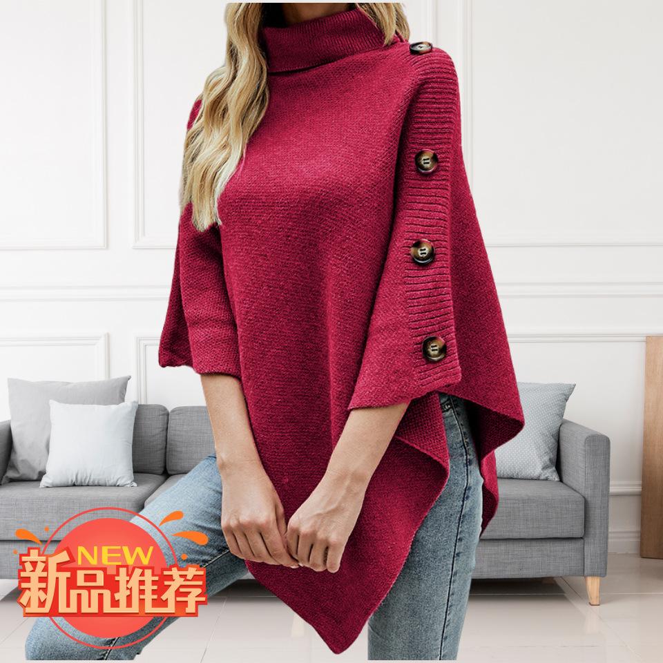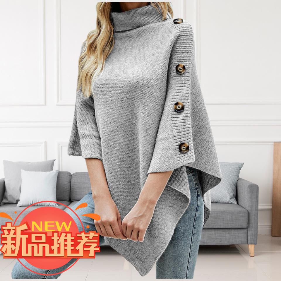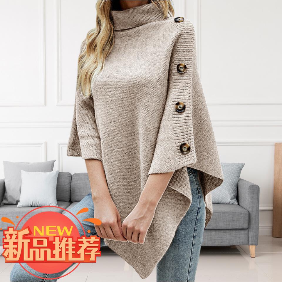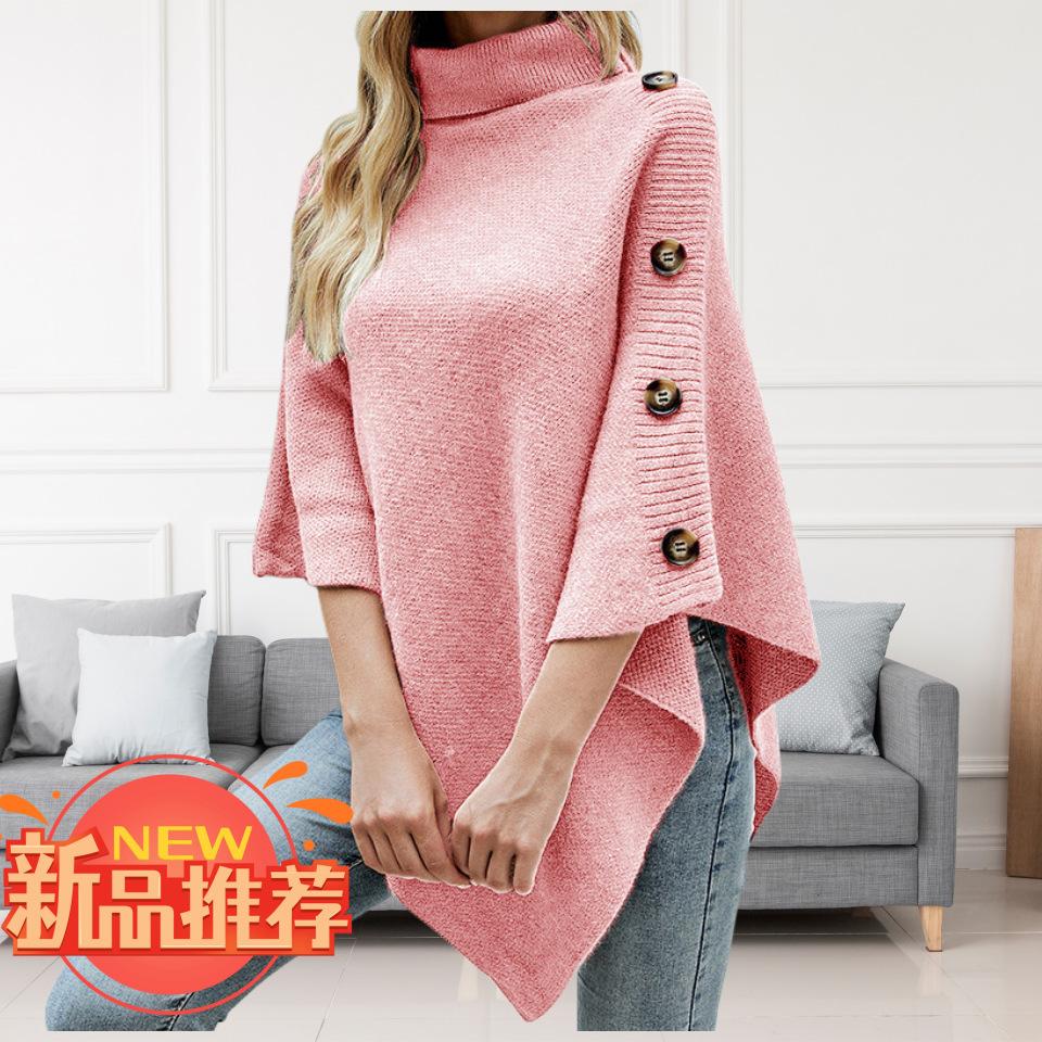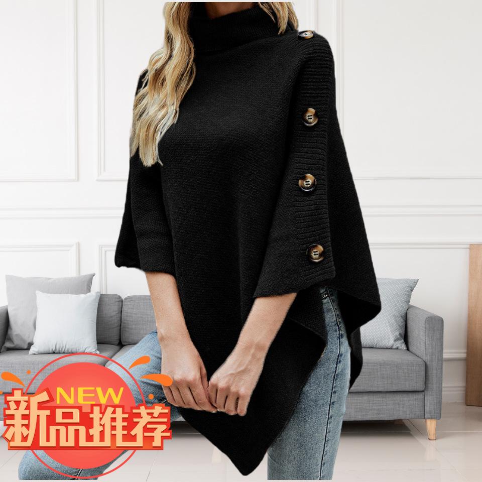 Suéter tipo chal de cuello alto de color sólido, capa dividida, abrigo para mujer, otoño e invierno, transfronterizo, directo de fábrica, Europa y América