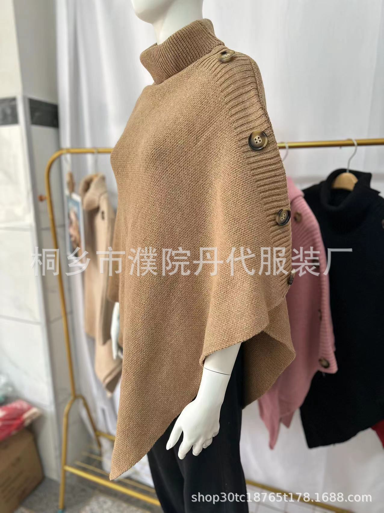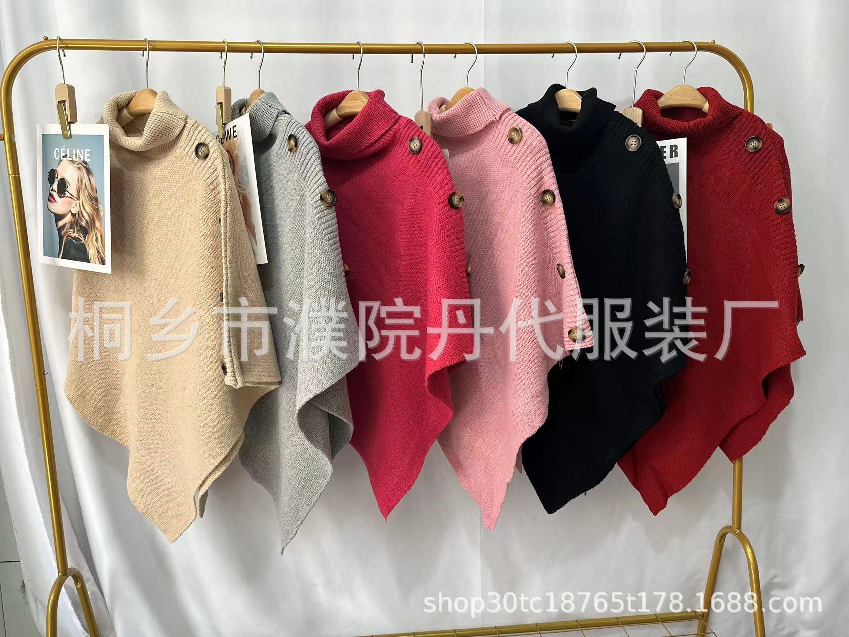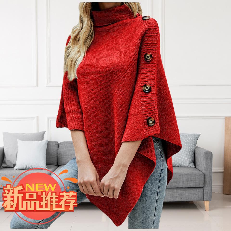Suéter tipo chal de cuello alto de color sólido, capa dividida, abrigo para mujer, otoño e invierno, transfronterizo, directo de fábrica, Europa y América