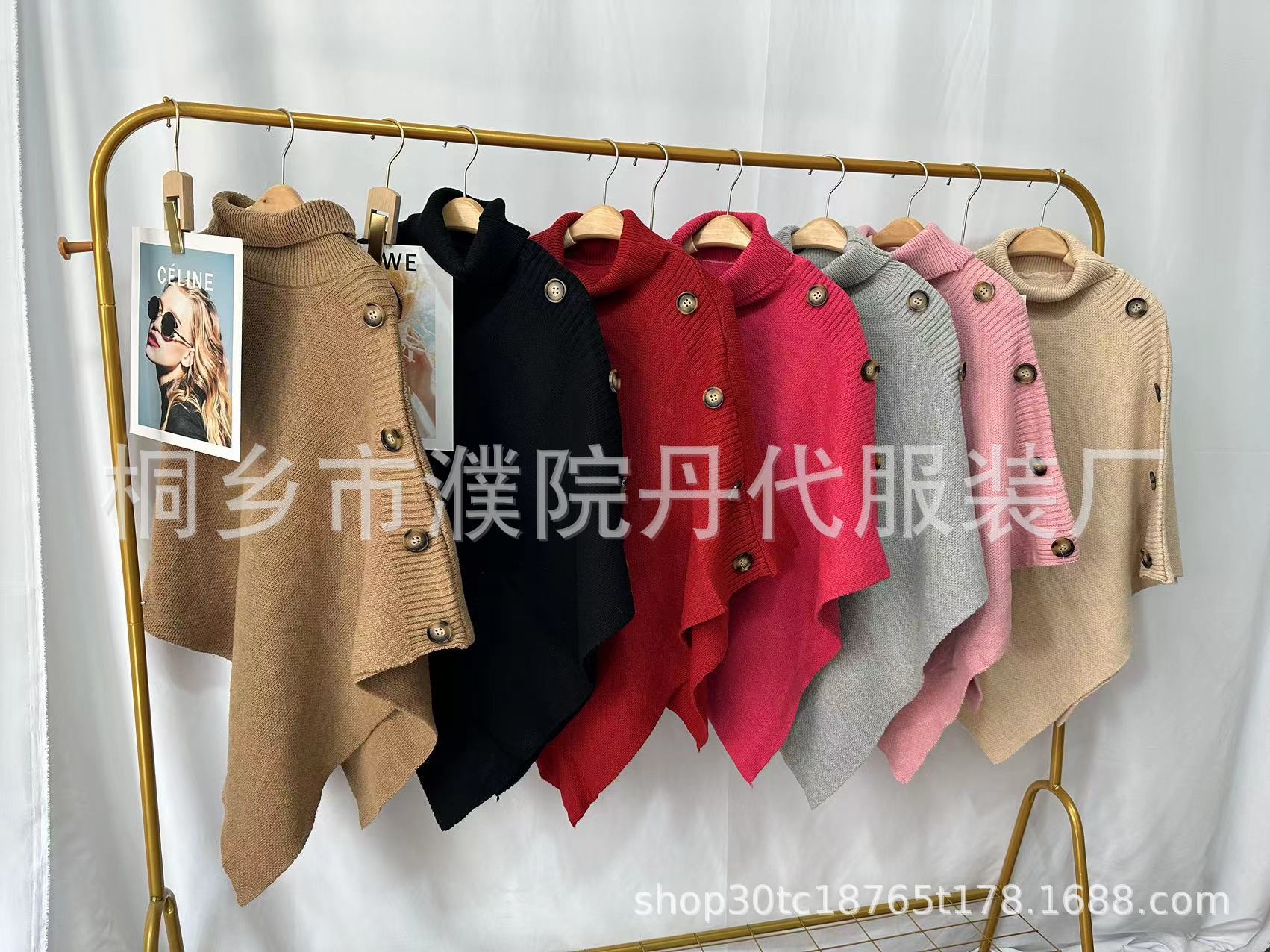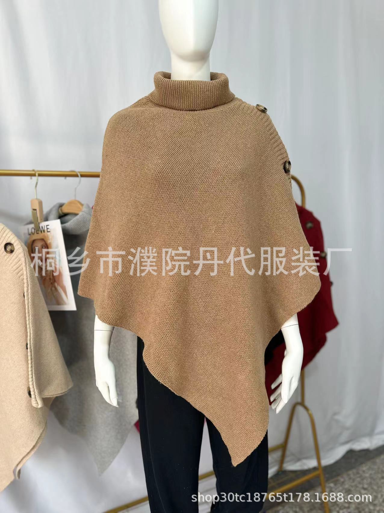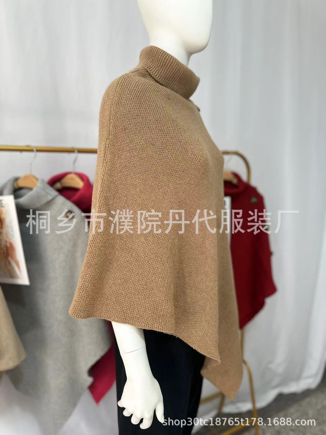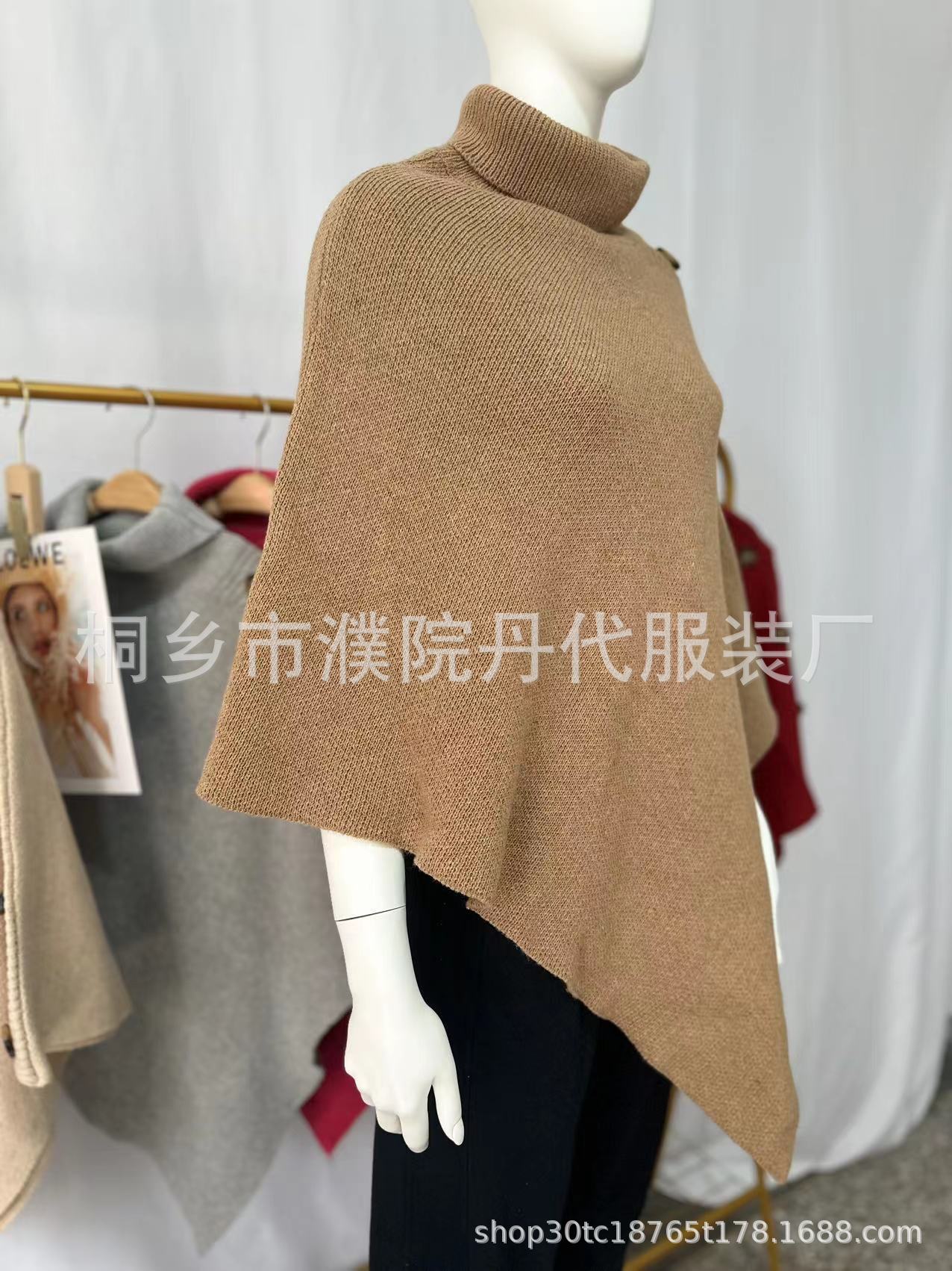 Suéter tipo chal de cuello alto de color sólido, capa dividida, abrigo para mujer, otoño e invierno, transfronterizo, directo de fábrica, Europa y América