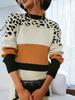 Suéter informal de cuello redondo con estampado de leopardo y bloques de color para mujer, otoño e invierno 2024, nuevo jersey cruzado para mujer, camisa básica de punto de manga larga