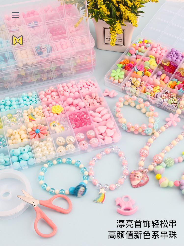 Paquete de accesorios de material de cuentas para manualidades para niños, pulsera de cuentas de juguete para niñas, juego de 24 cuadrículas, caja de fábrica al por mayor