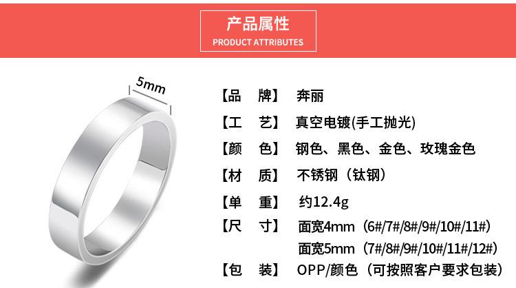 Anillo de Moda Simple de Acero de Titanio Brillante de Venta Caliente Japonés y Coreano Acero Inoxidable Anillo Plano Anillo de Cola Venta Directa de Fábrica Diamante