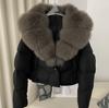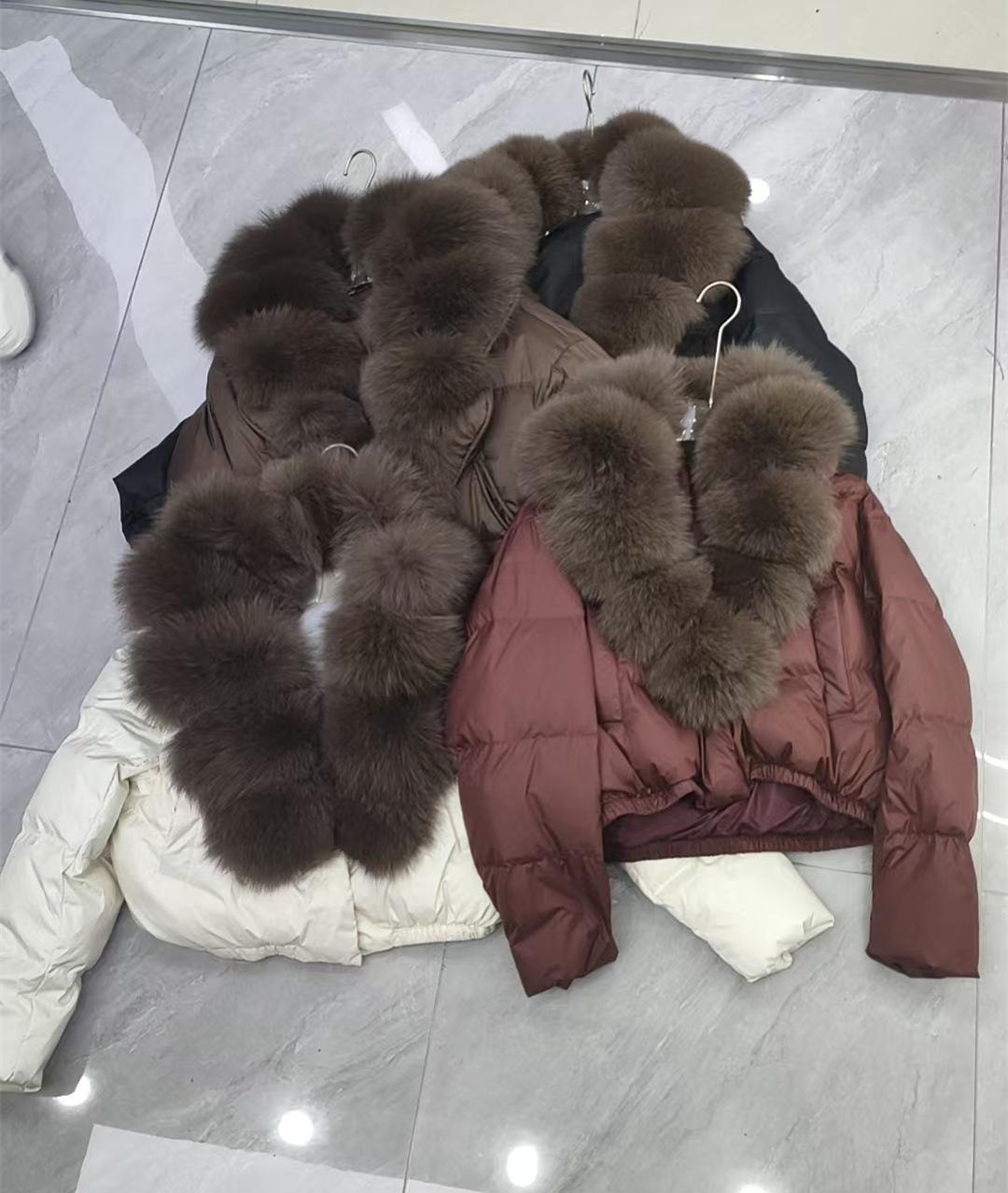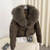 2024 invierno nuevo alta gama piel cuello de piel de zorro grande plumífero de pato blanco para mujer abrigo corto cálido