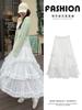 Falda de gasa de encaje para mujer, primavera y verano 2024, nueva falda de hada de longitud media, falda plisada abullonada de malla, de moda