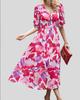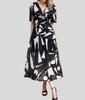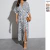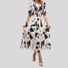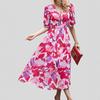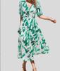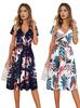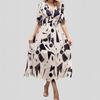 Vestido Europeo y Americano de Amazon Primavera y Verano Popular Cuello en V Estampado Cintura Vestido Ropa de Moda para Mujer Exportación