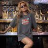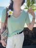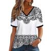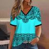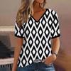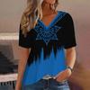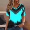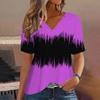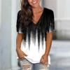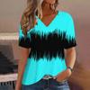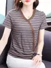 Camiseta informal cómoda para mujer, con estampado de rayas, cuello en V degradado, manga corta, básica, ropa urbana de verano