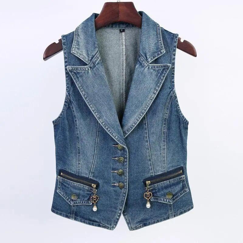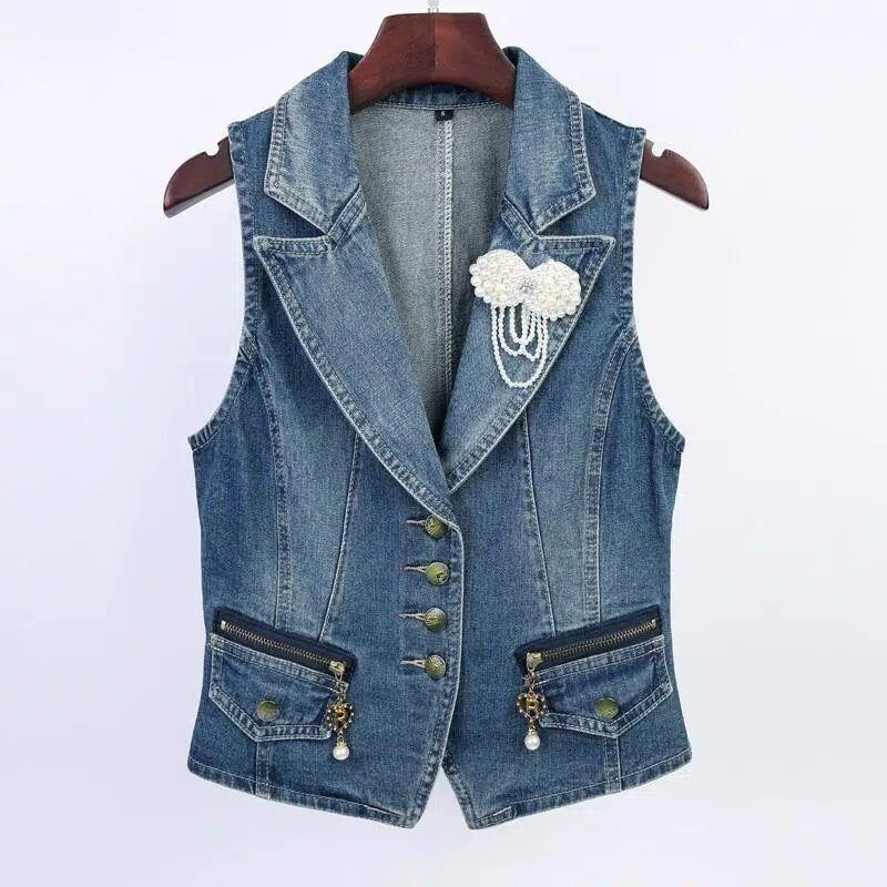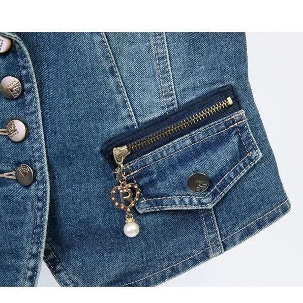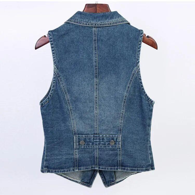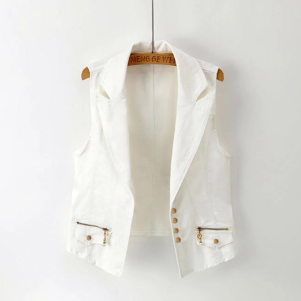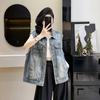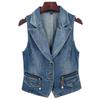 Chaleco de mezclilla para mujer corto ajustado estilo coreano nuevo primavera y verano chaqueta sin mangas chaleco talla grande cuello de mascota