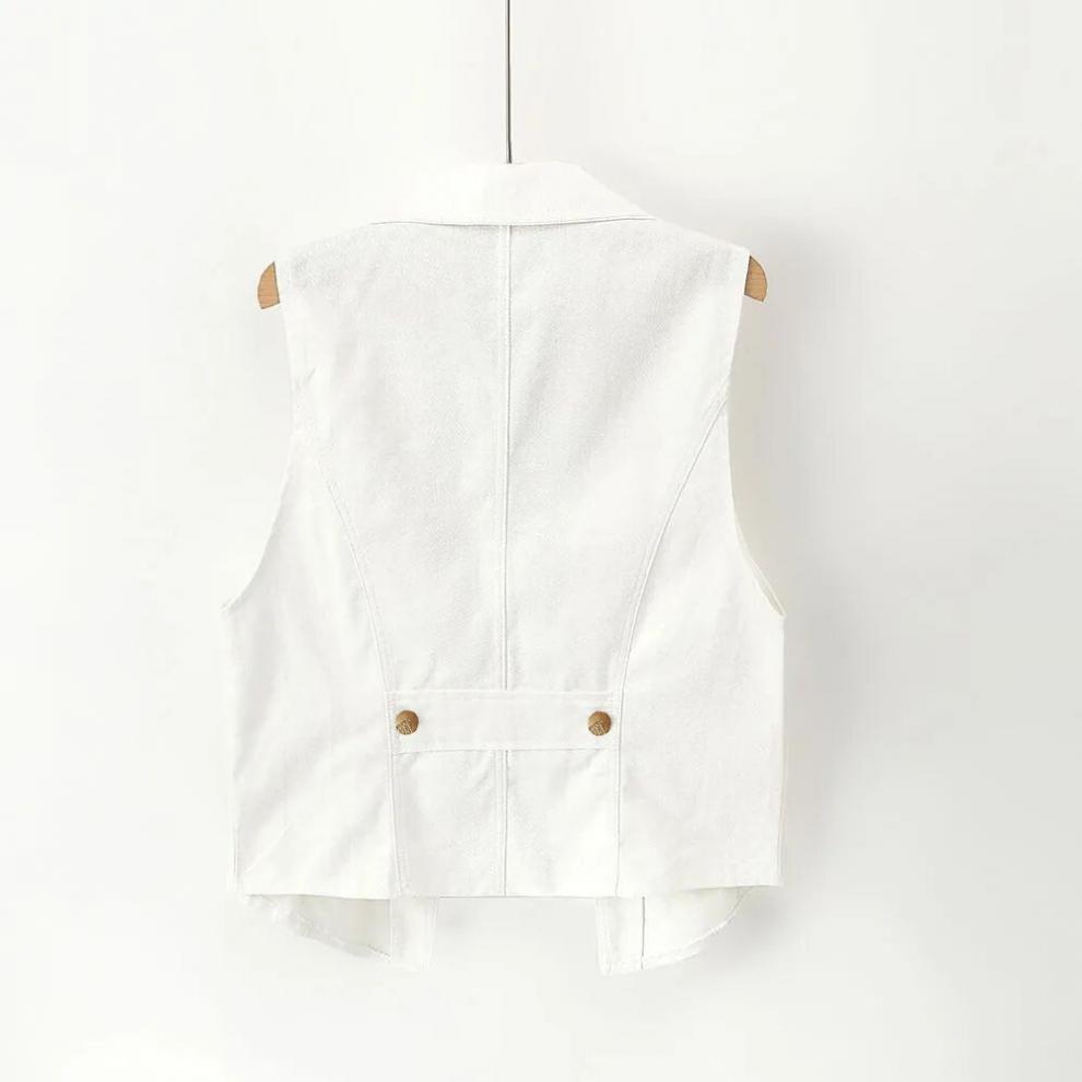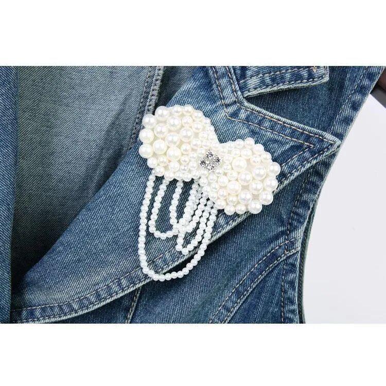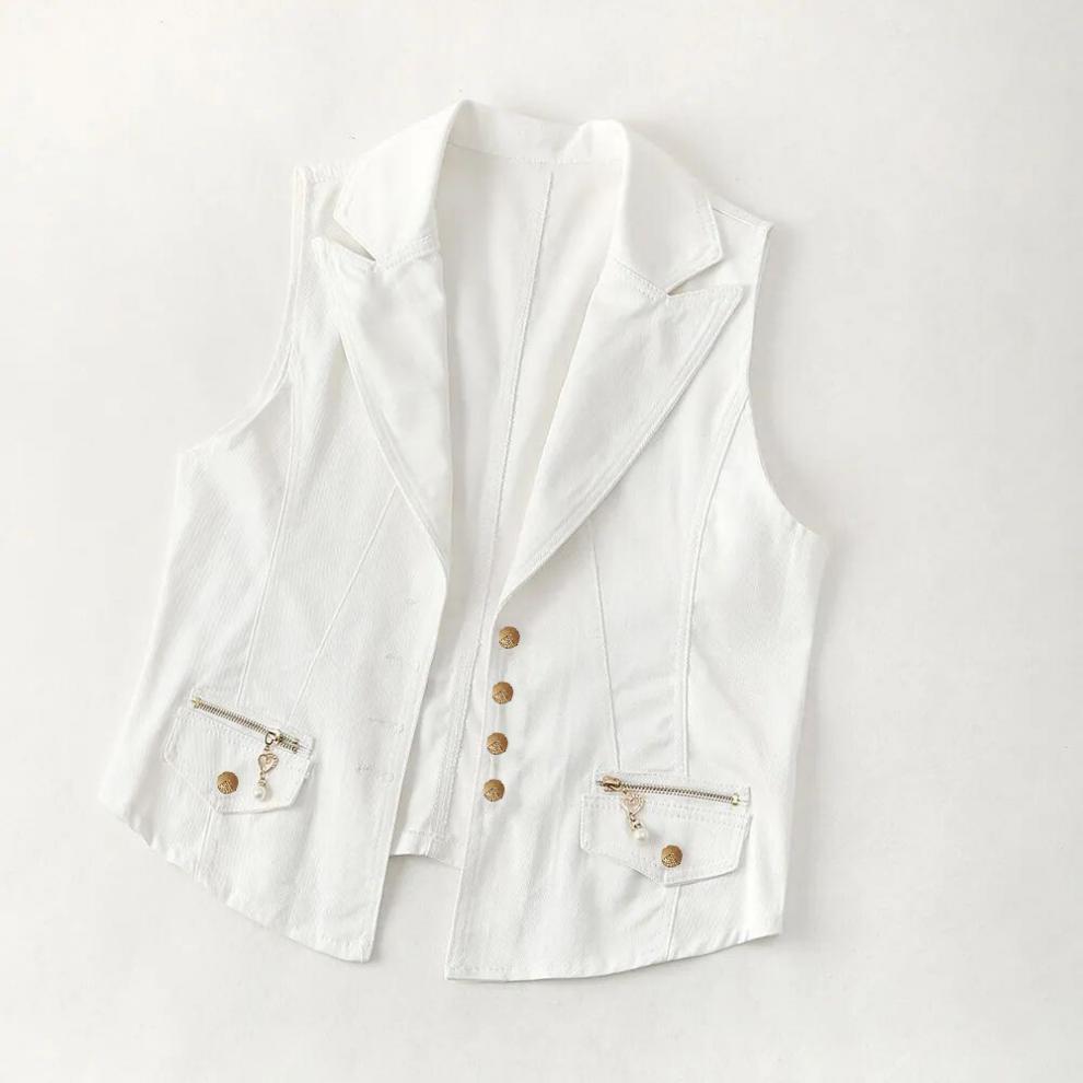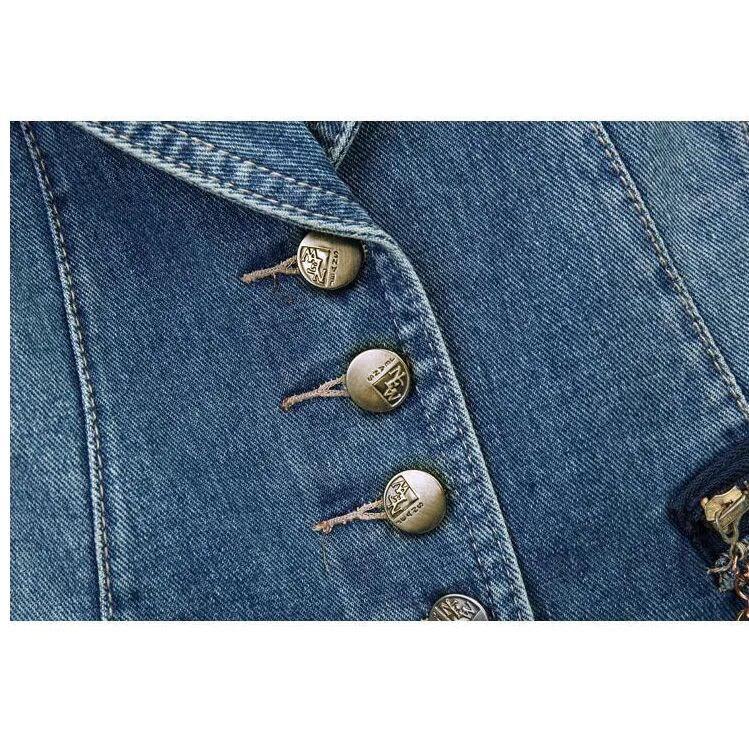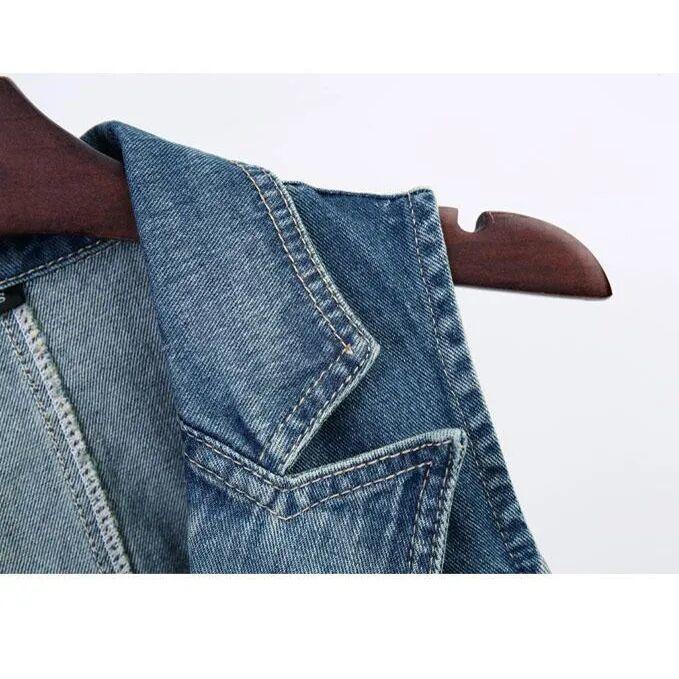 Chaleco de mezclilla para mujer corto ajustado estilo coreano nuevo primavera y verano chaqueta sin mangas chaleco talla grande cuello de mascota