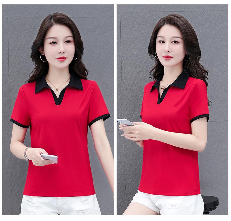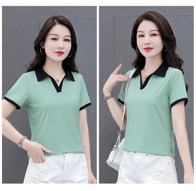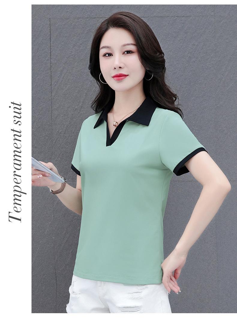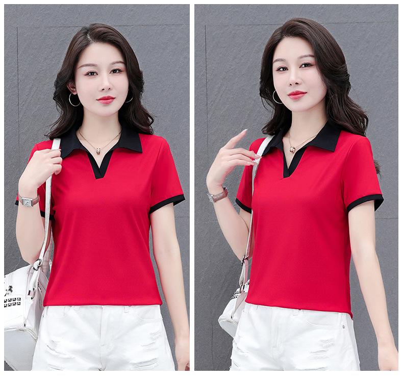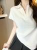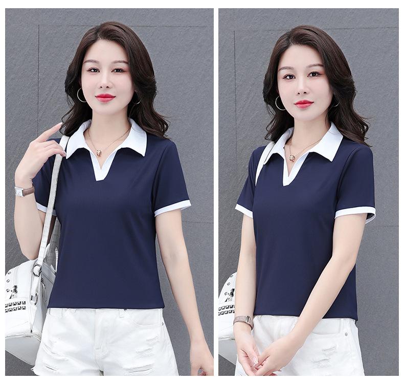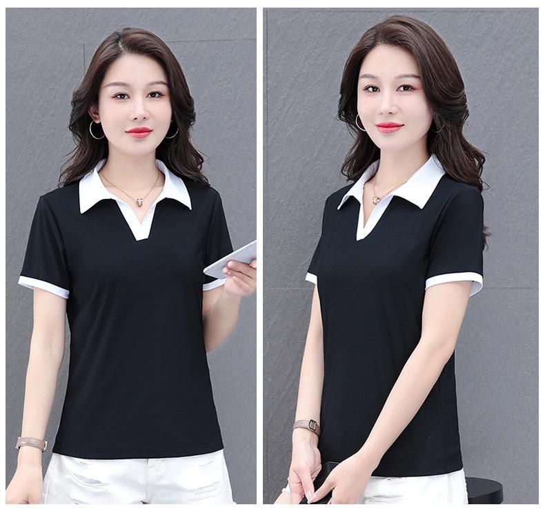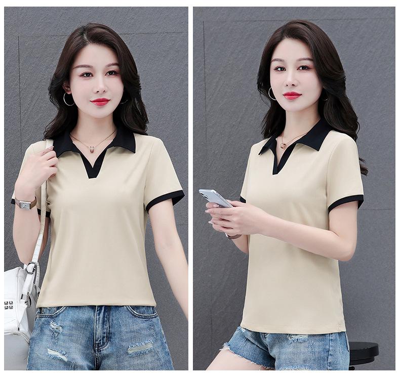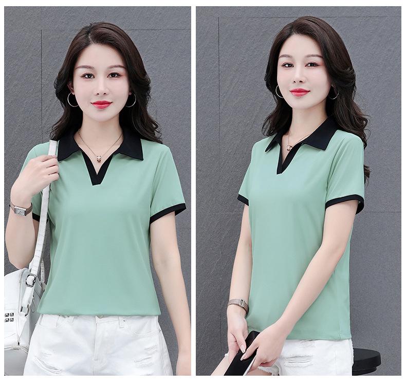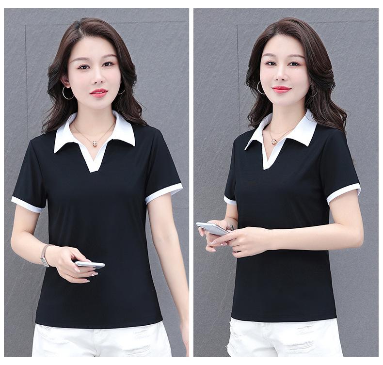 Camisa Polo de Solapa Drop Shipping para Mujer Verano 2024 Nueva Holgada Talla Grande Top Manga Corta Cuello en V Venta al por Mayor