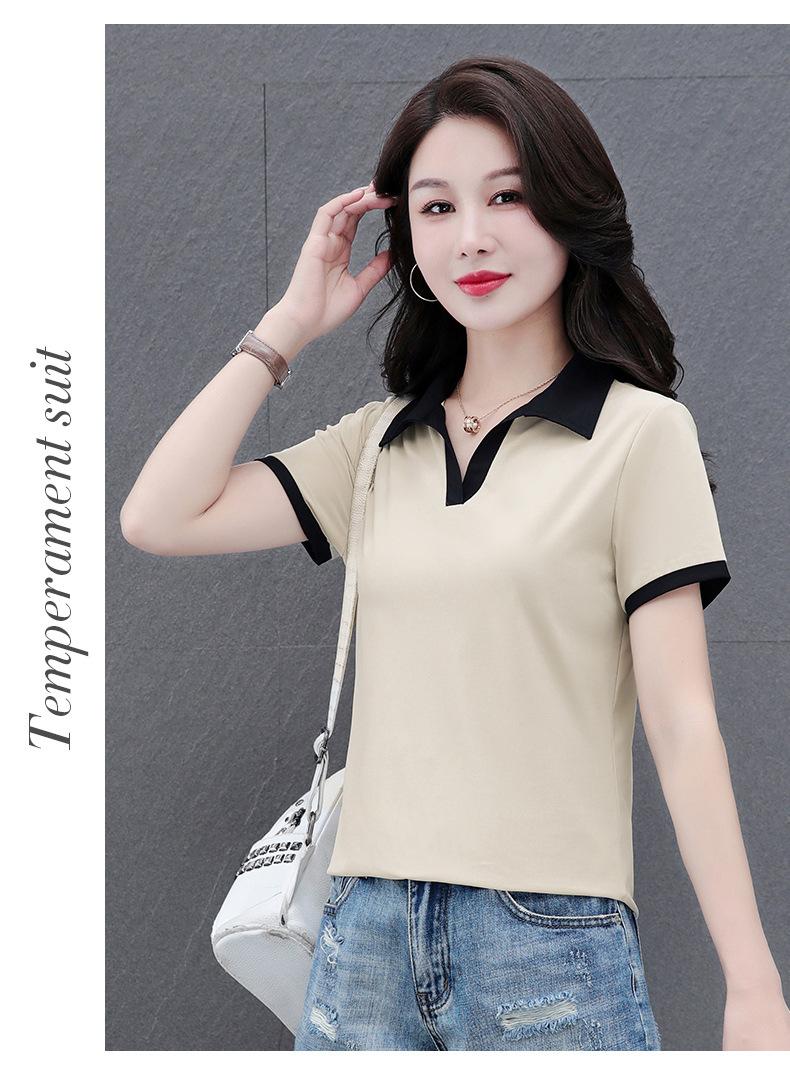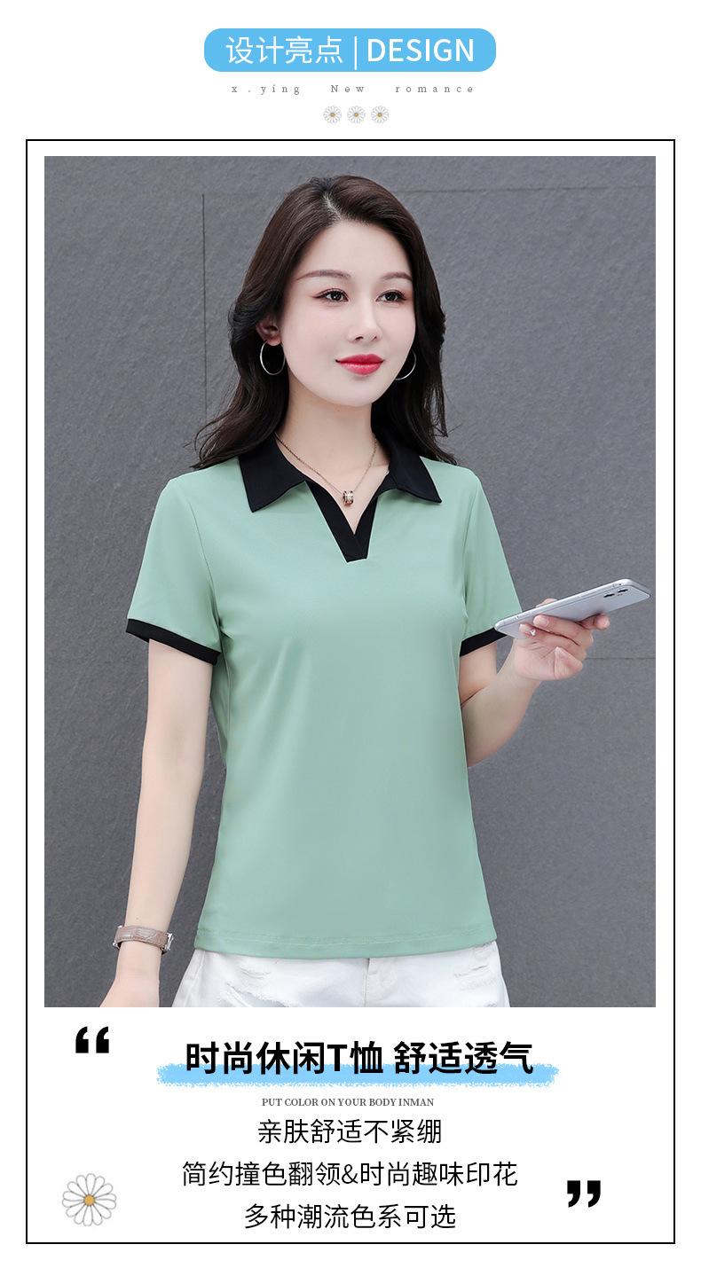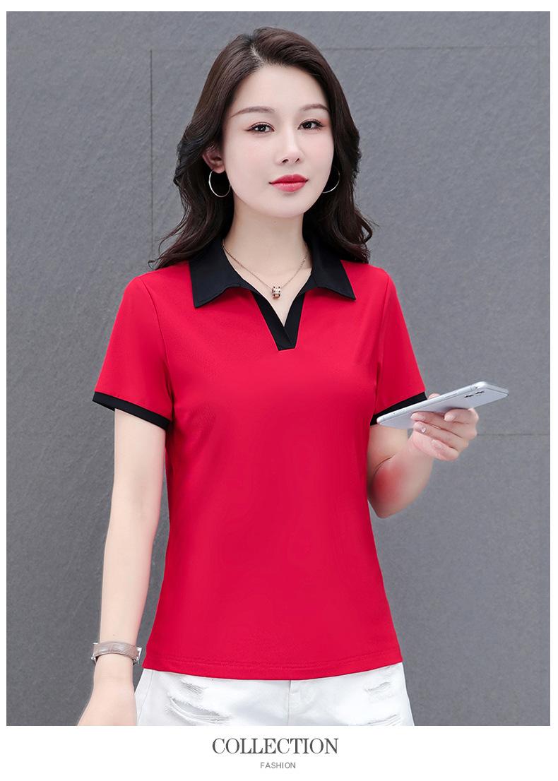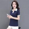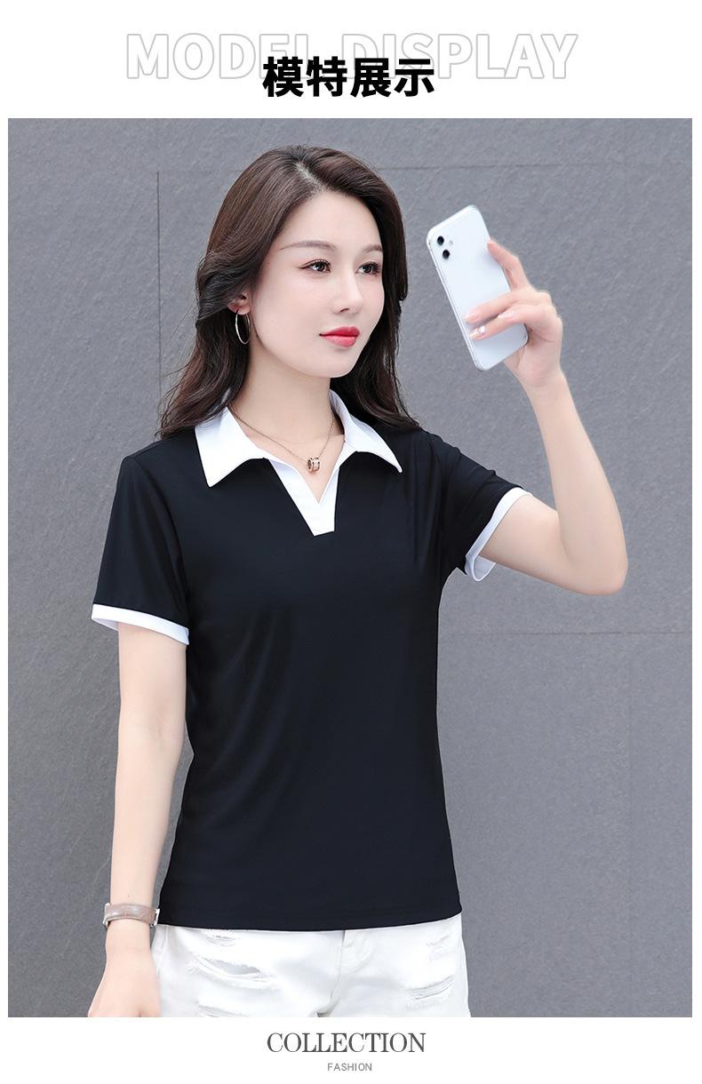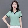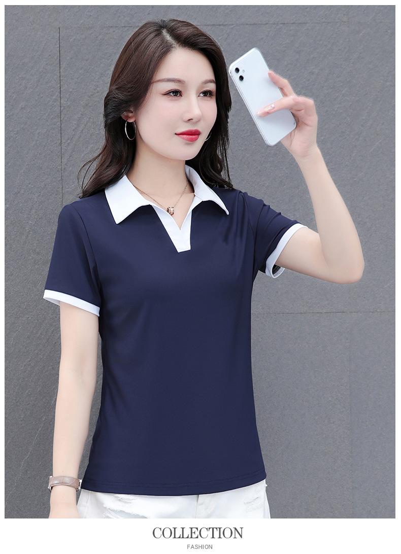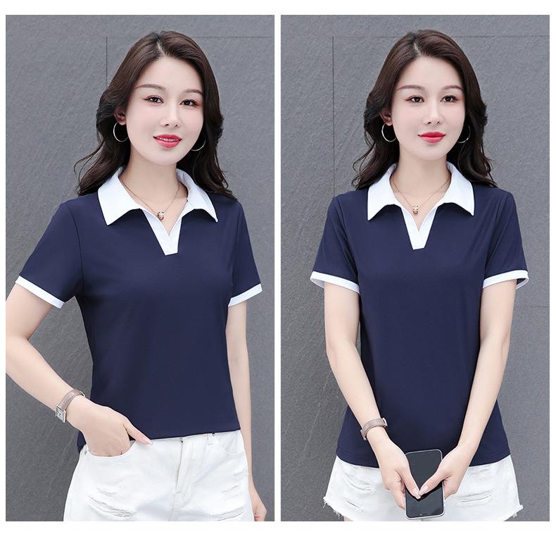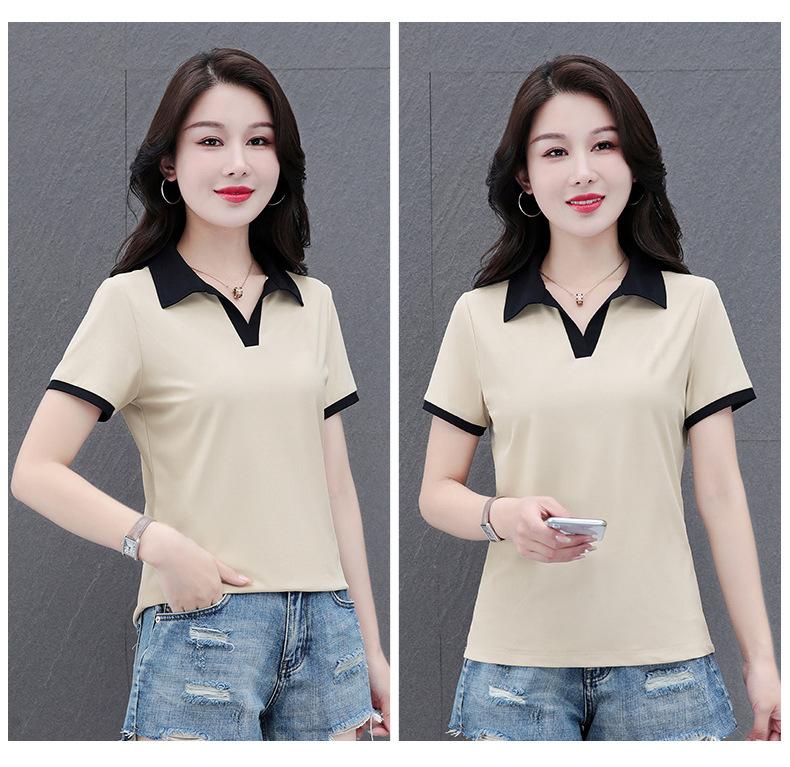 Camisa Polo de Solapa Drop Shipping para Mujer Verano 2024 Nueva Holgada Talla Grande Top Manga Corta Cuello en V Venta al por Mayor